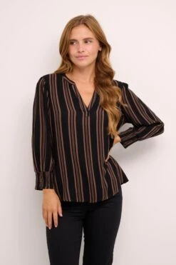 Kaffe Blouses Met Korte Mouw Blouse Aelin Dames Bruin / Zwart