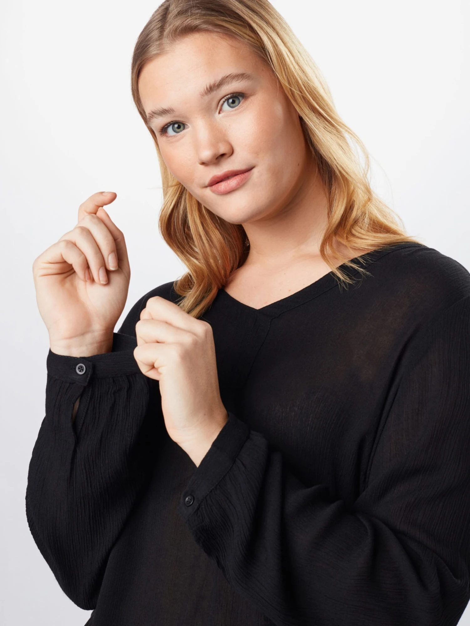 EffenViscoseZonder kraagPlooienGedrapeerd1-knoops manchettenRonde zoomOvercut schouderGestructureerd oppervlakOp staal nadenGladde stofKoele gripBlouseshirtLENZING™ ECOVERO™ Viscose*