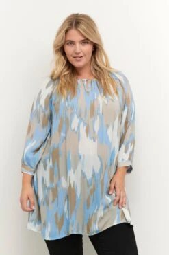 ViscoseZonder kraagGedrapeerdGevoerde zoom/randRonde zoomDiepe snit/decolletéAll-over patroonGladde stofBlouseshirtLENZING™ ECOVERO™ Viscose*
