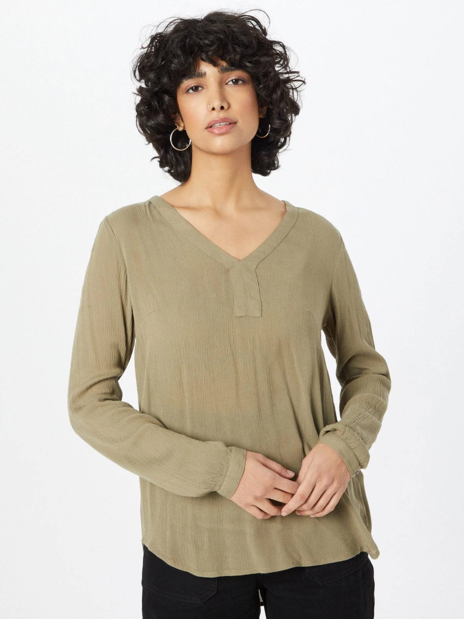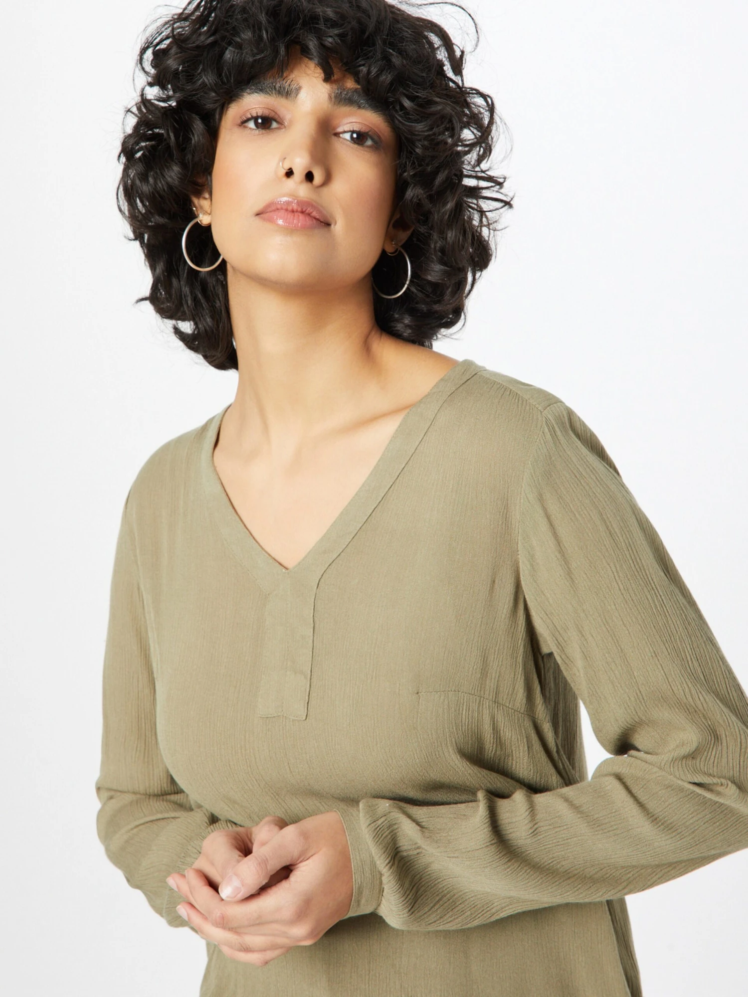 EffenViscoseV-halsTuniek kraagGedrapeerdGevoerde zoom/randRonde zoomIngelegde kraagOp staal nadenLichte stofBlouseshirtLENZING™ ECOVERO™ Viscose*