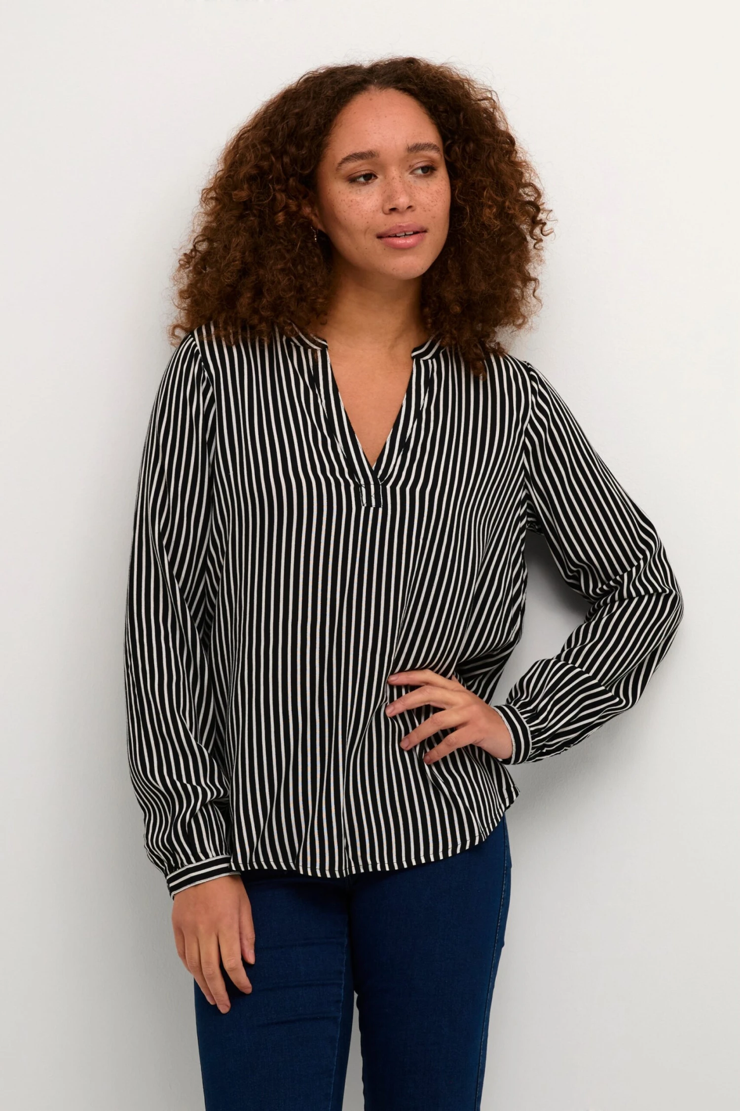 GestreeptViscoseTuniek kraagGedrapeerdBlouseshirtLENZING™ ECOVERO™ Viscose*
