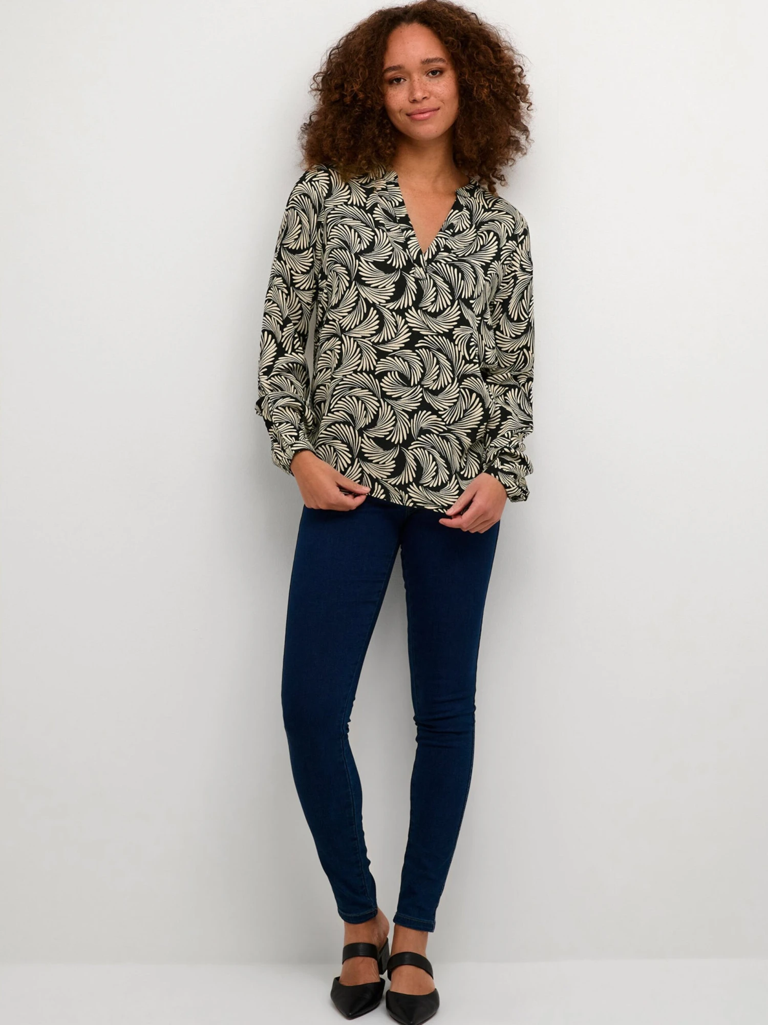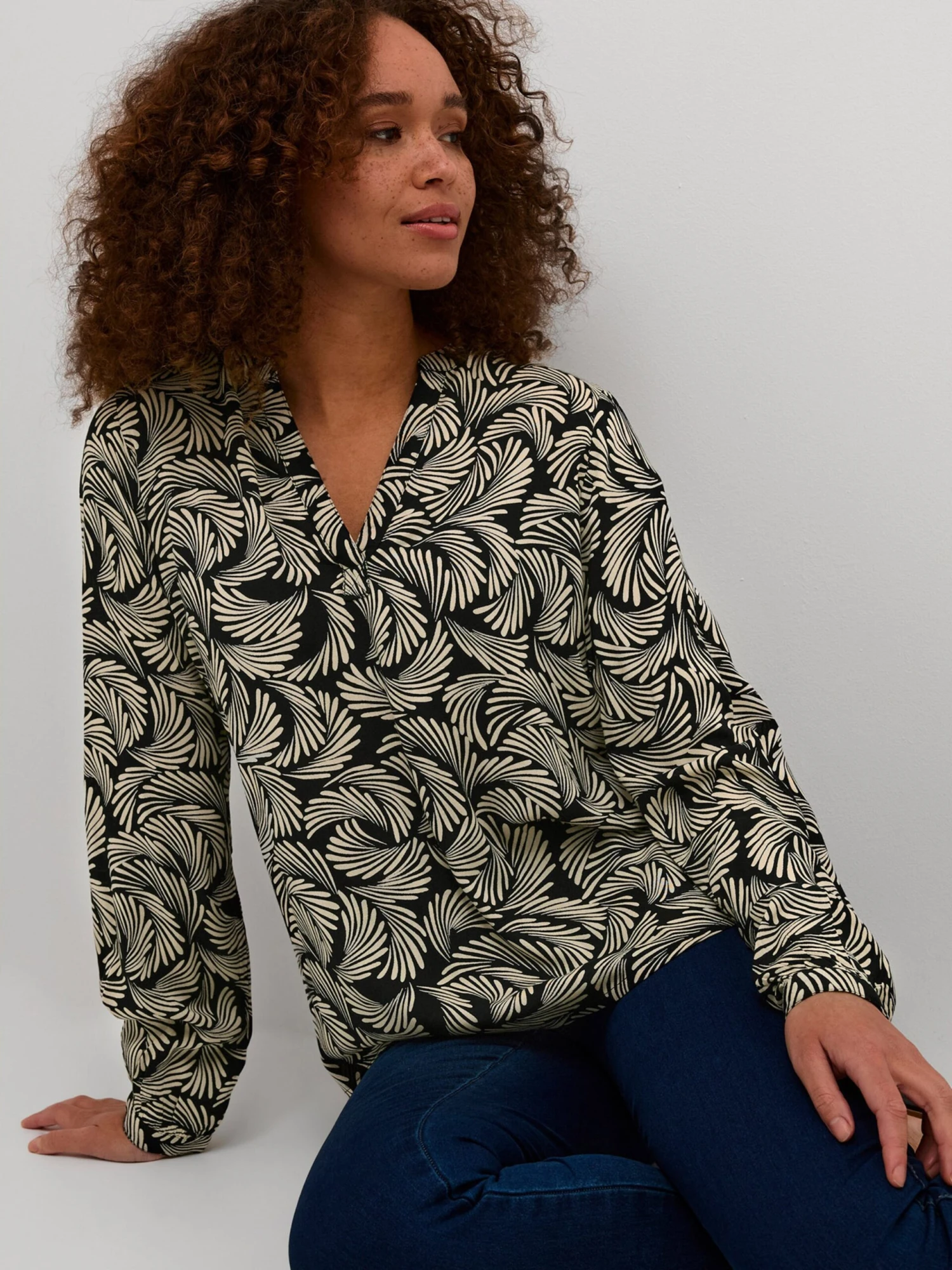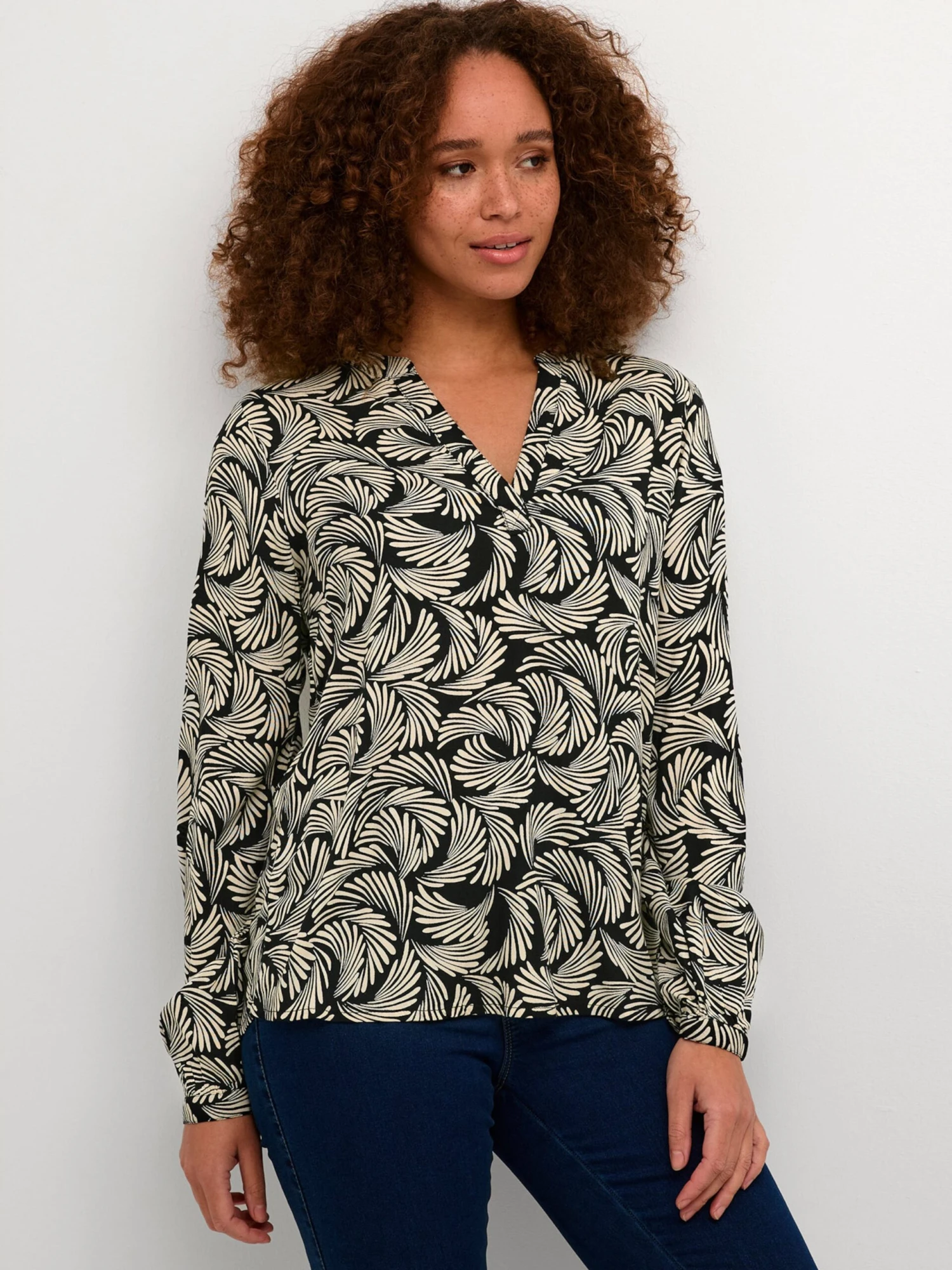 ViscoseTuniek kraagGedrapeerdGevoerde zoom/randRonde zoomAll-over patroonOp staal nadenBlouseshirt