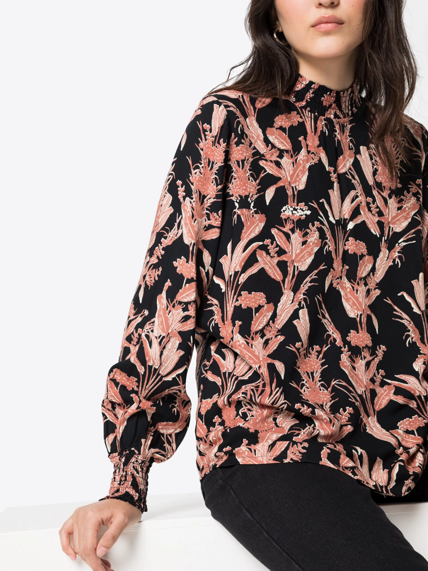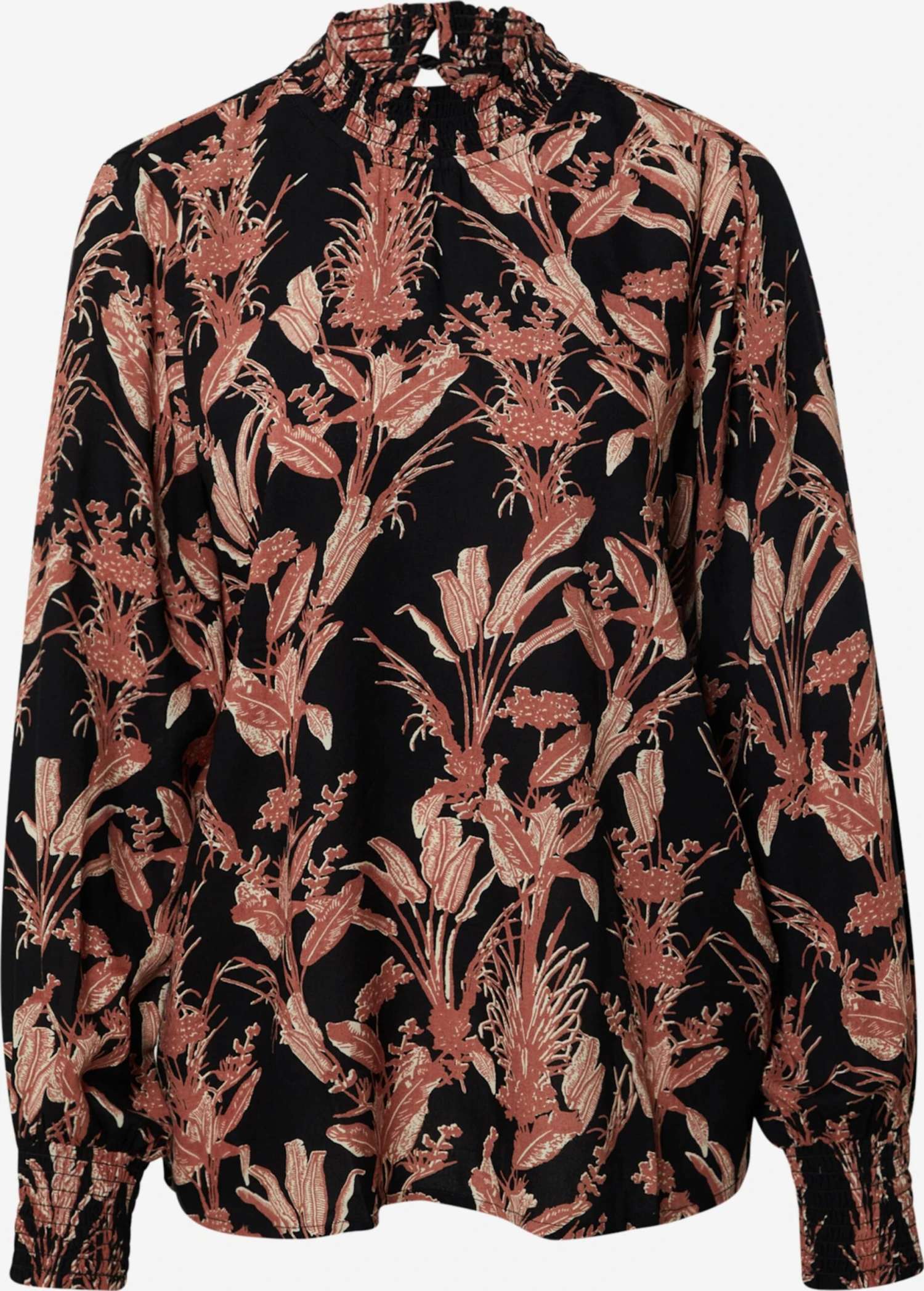 BloemenprintViscoseOpstaande kraagCut-outsGedrapeerdBlouseshirtKnoopsluitingLENZING™ ECOVERO™ Viscose*
