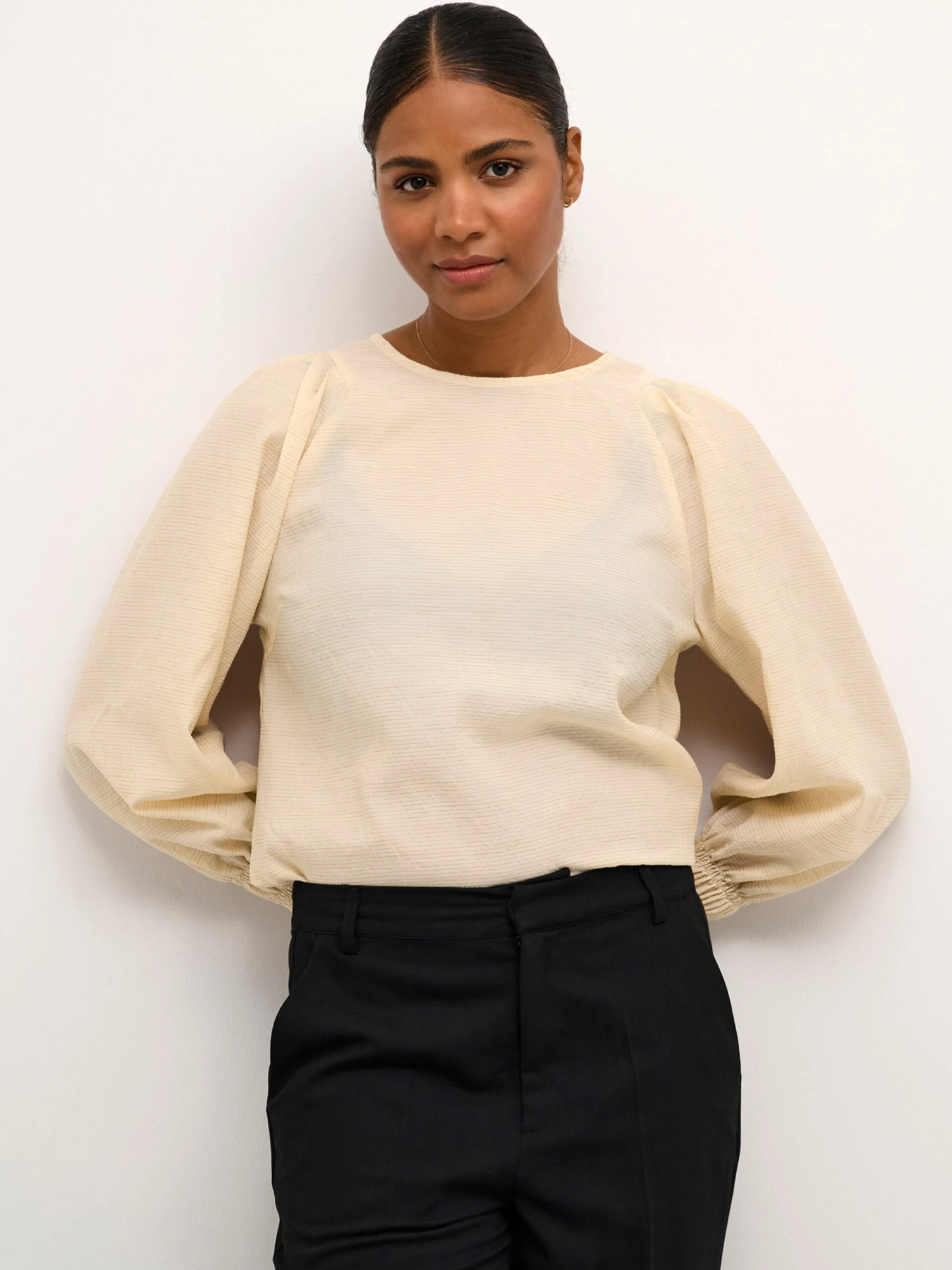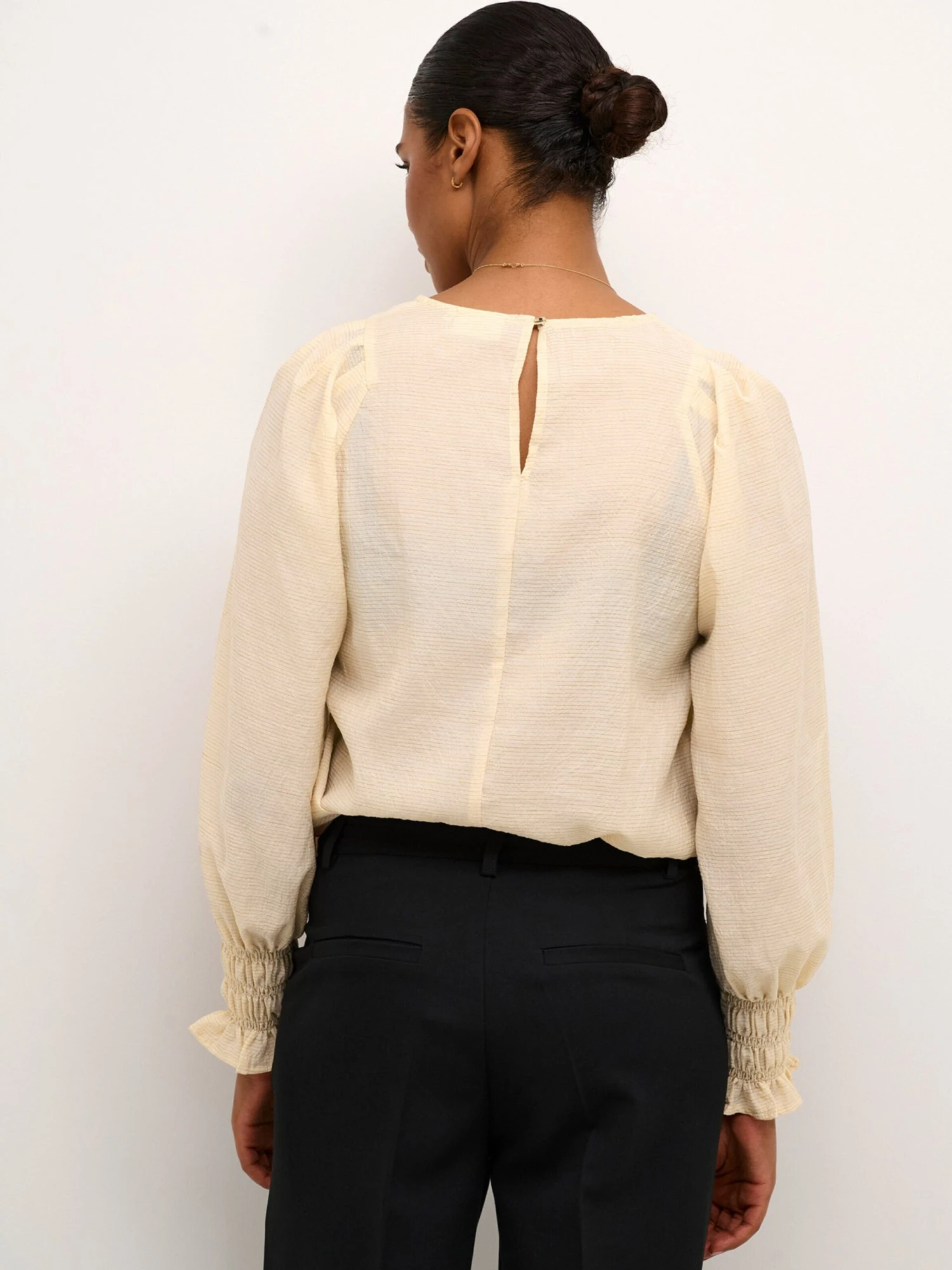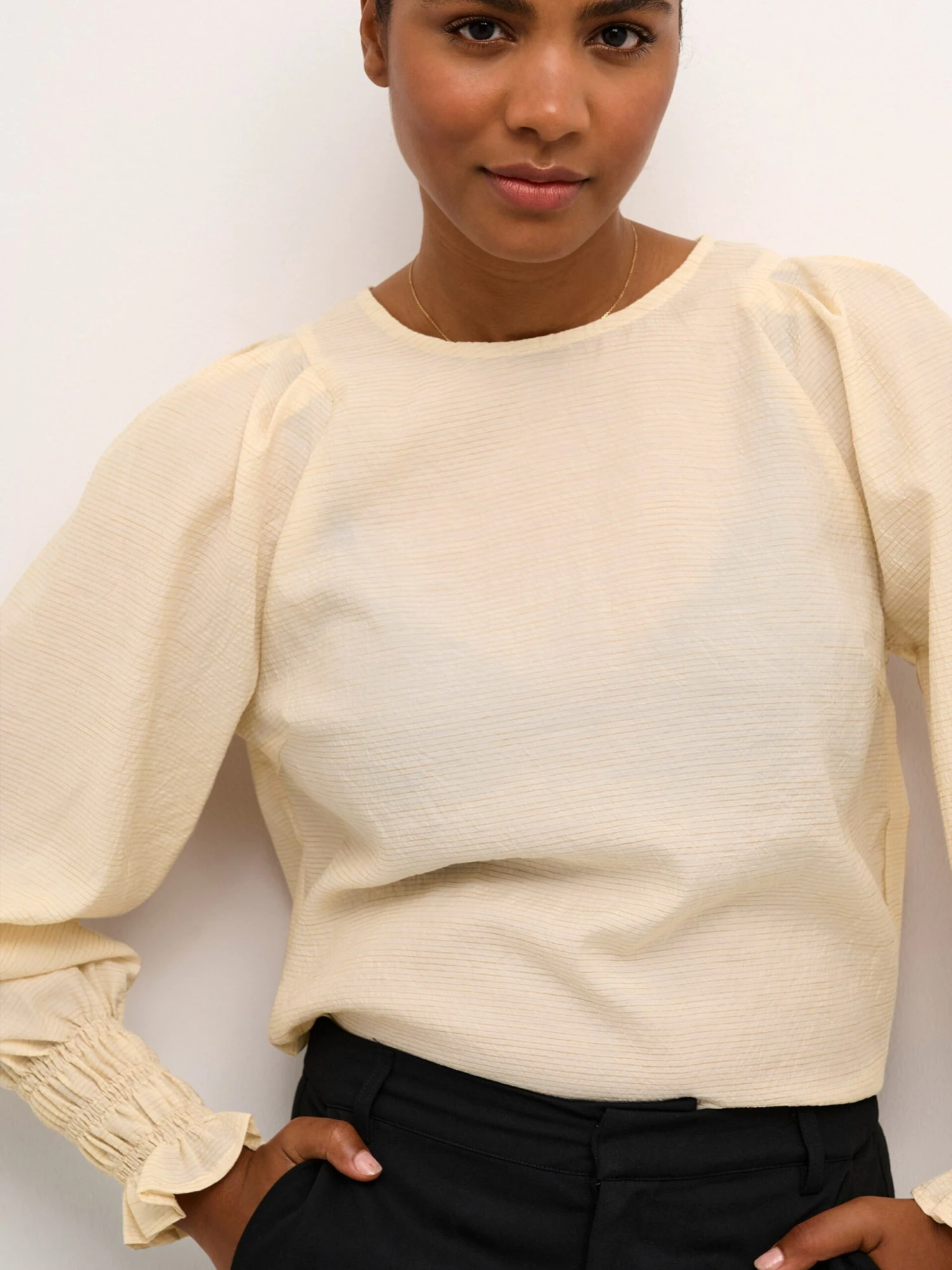 EffenZonder kraagCut-outsRuchesPlooienGedrapeerdFiguurnadenElastische taille/zoomKeyholesluitingPofmouwenLicht transparantAll-over patroonBlouseshirtKnoopsluiting