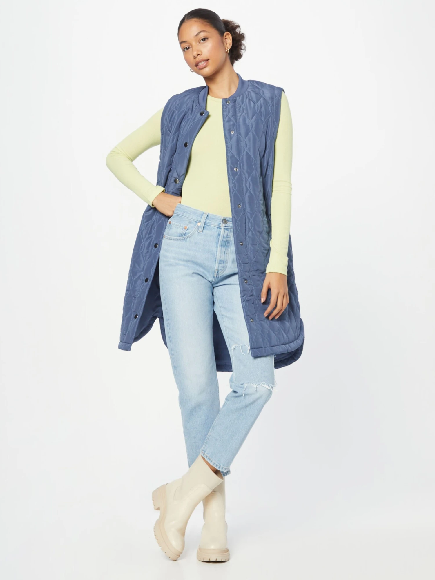 EffenGeribbelde kraagRonde zoomZijdelingse inkepingenVerlengd rugpandZakken aan de zijkantStikselsOp staal nadenLicht gevoerdDrukknoop