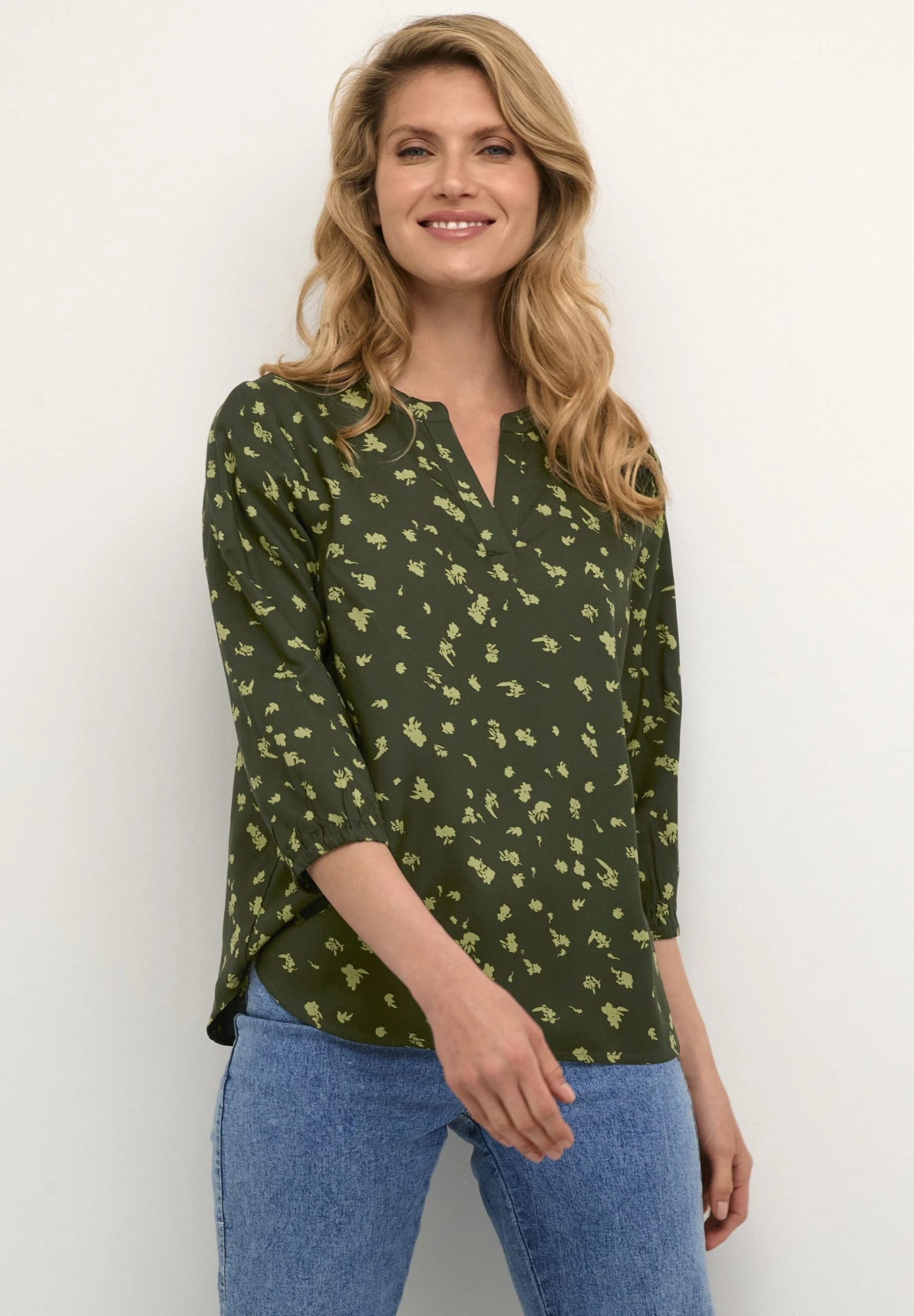 Kaffe Bppolina Regular Fit 3/4 Sleeves – Blouse – Green Toned Flower Print