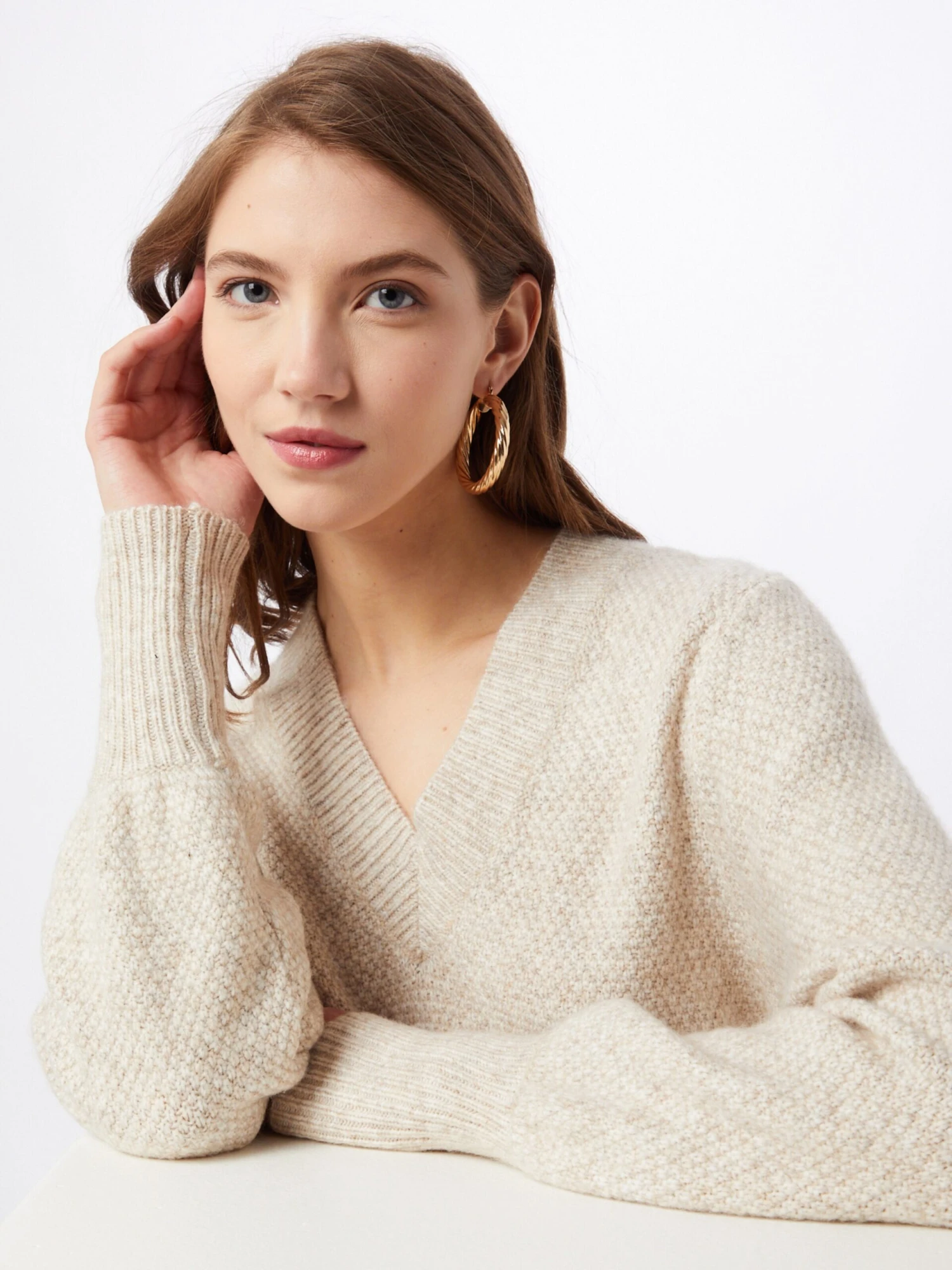 MélangeV-halsGeribbelde kraagRechte zoomGeribd ceintuurtjeMet textuurVoelt zacht aan