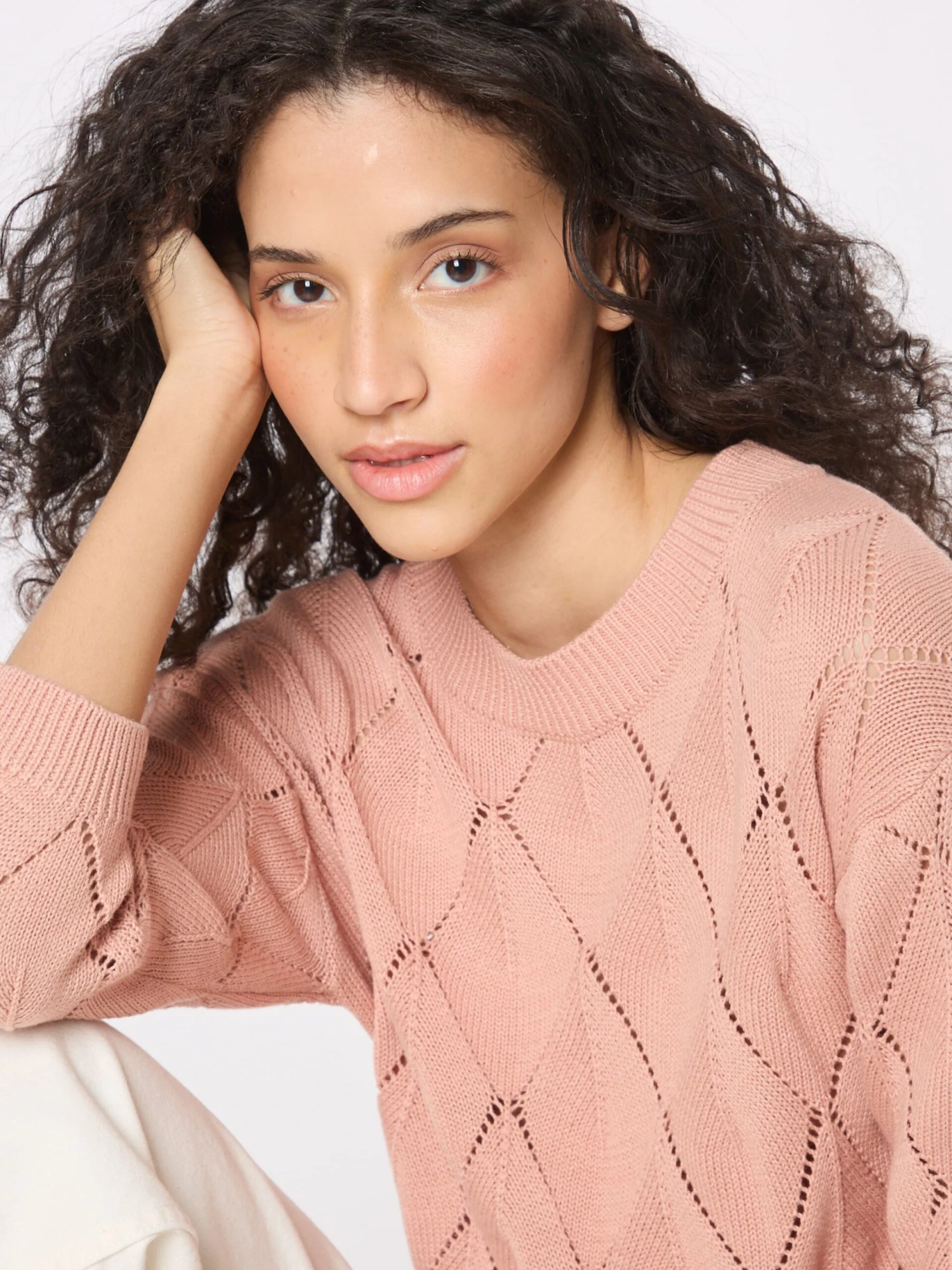 EffenKatoenRonde halsMeshGeribbelde kraagRechte zoomGeribd ceintuurtjeOvercut schouderFully fashionedVoelt zacht aan