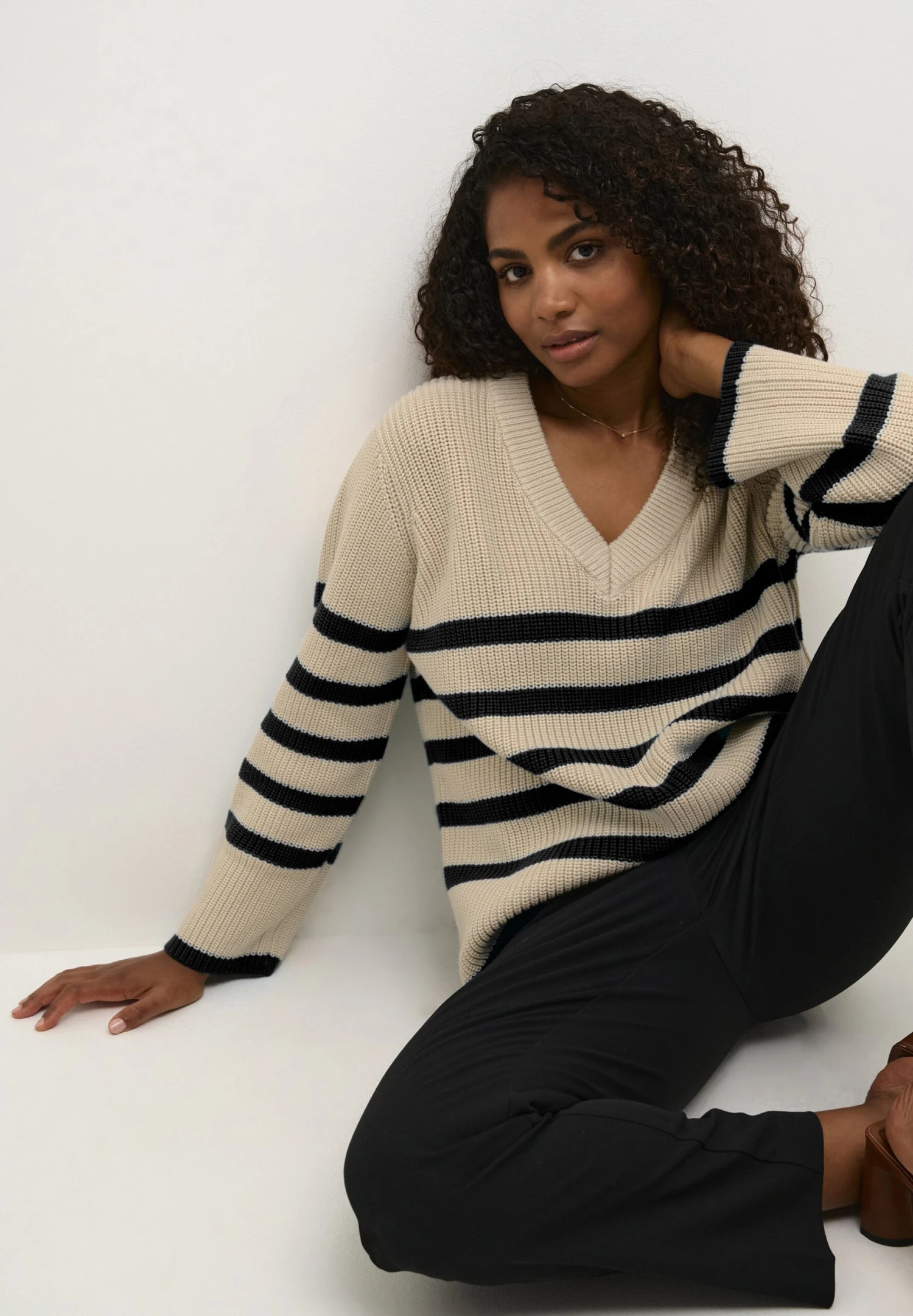 Kaffe Irina – Trui – Sand Dollar Black Stripe