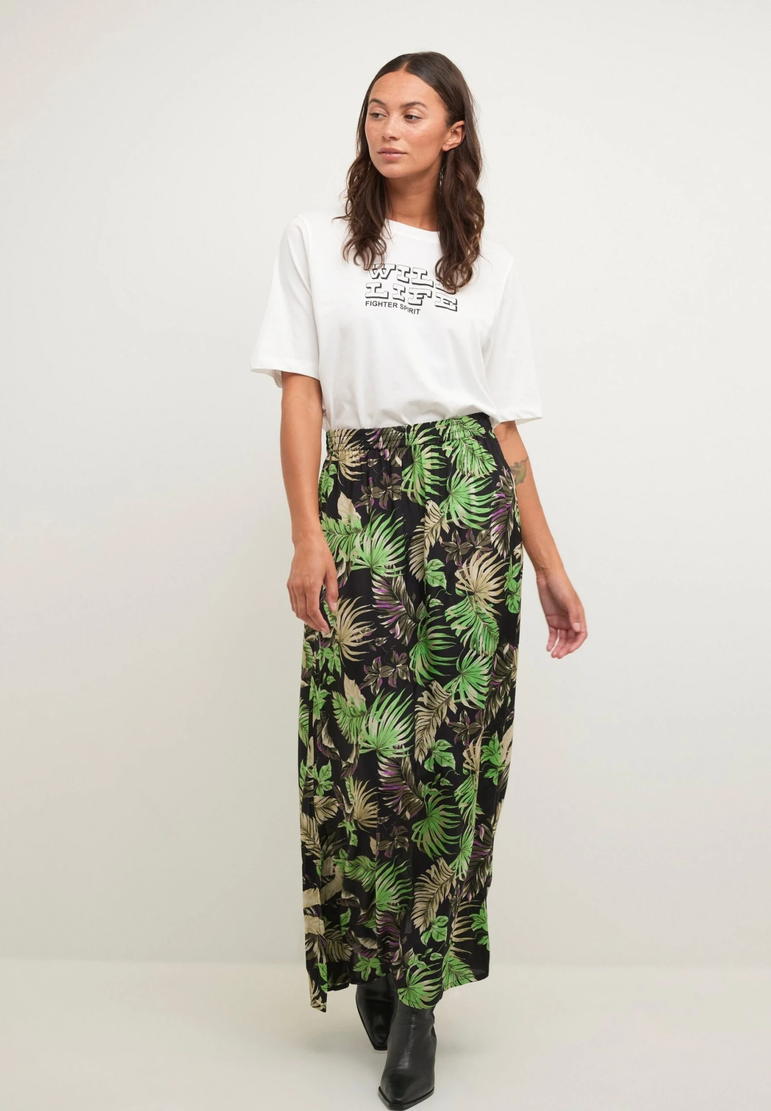Kaffe Kalulu – Maxirok – Green Black Violet Palm Print