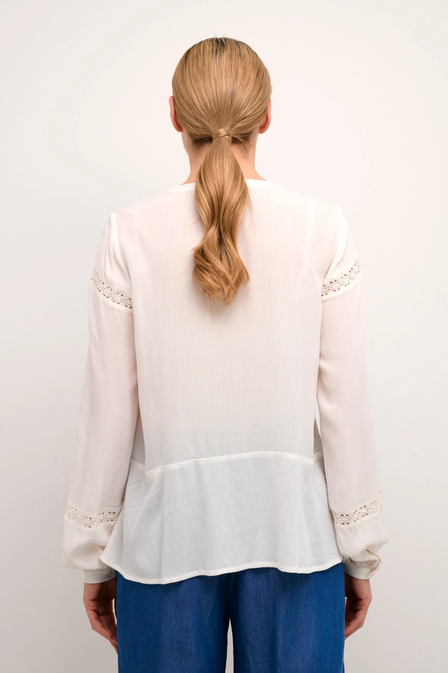 EffenViscoseZonder kraagKantGedrapeerdWijde blouseKnoopsluitingLENZING™ ECOVERO™ Viscose*