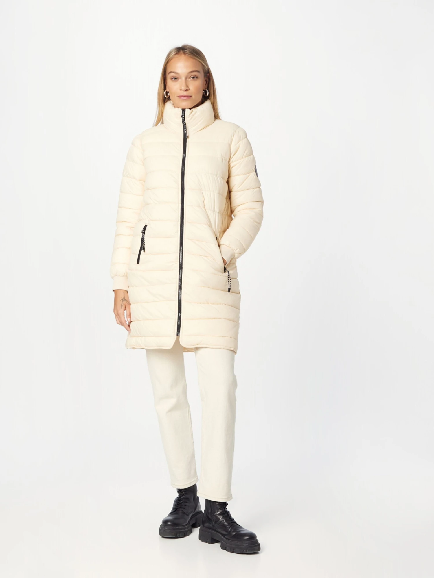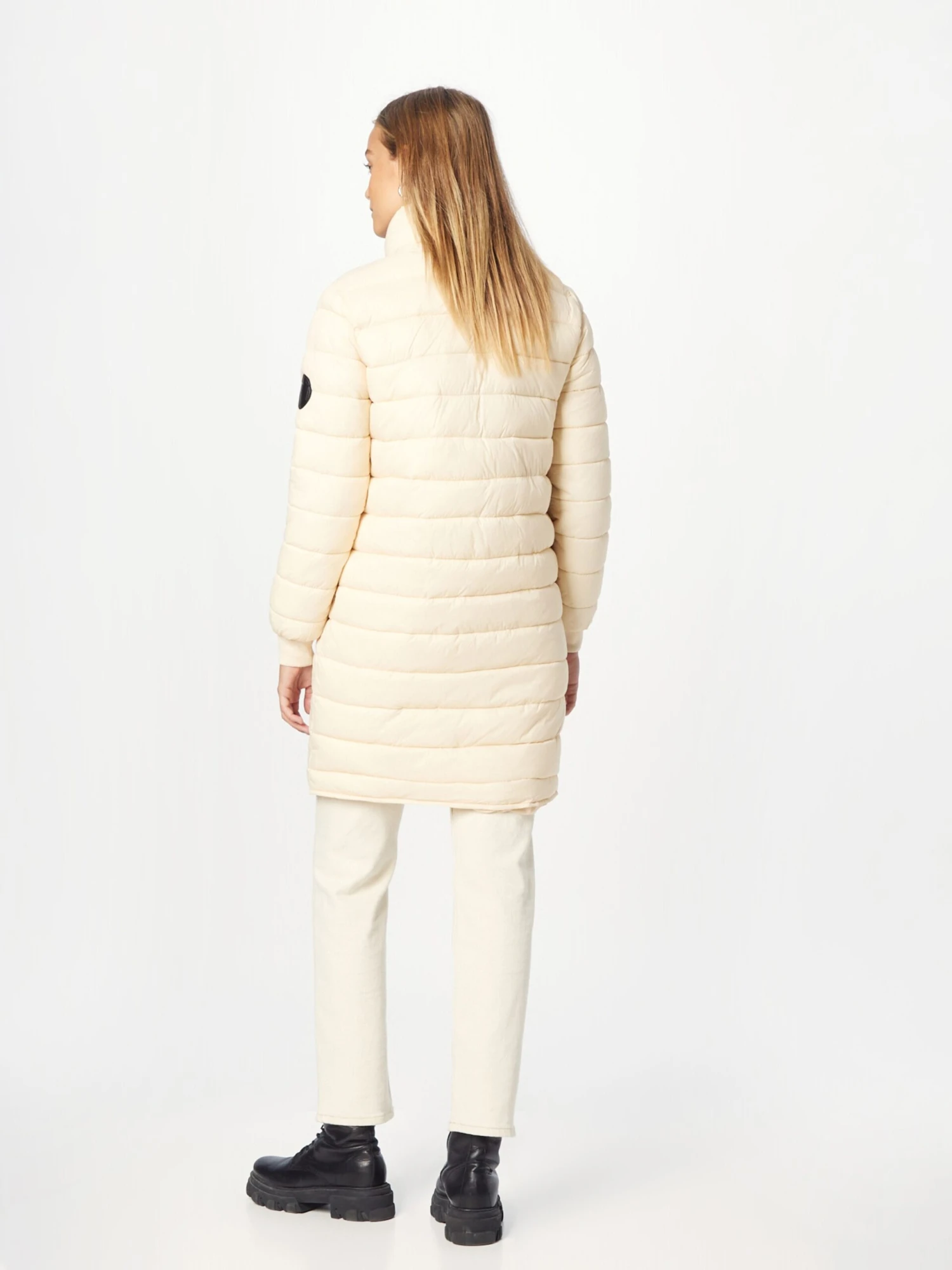 EffenGewatteerde jasGewatteerde jasGevoerde zoom/randGeribd ceintuurtjeStaande kraagRitszakken aan de zijkantLabel patch/label flagOp staal nadenGladde stofWarm gevoerdRitssluiting