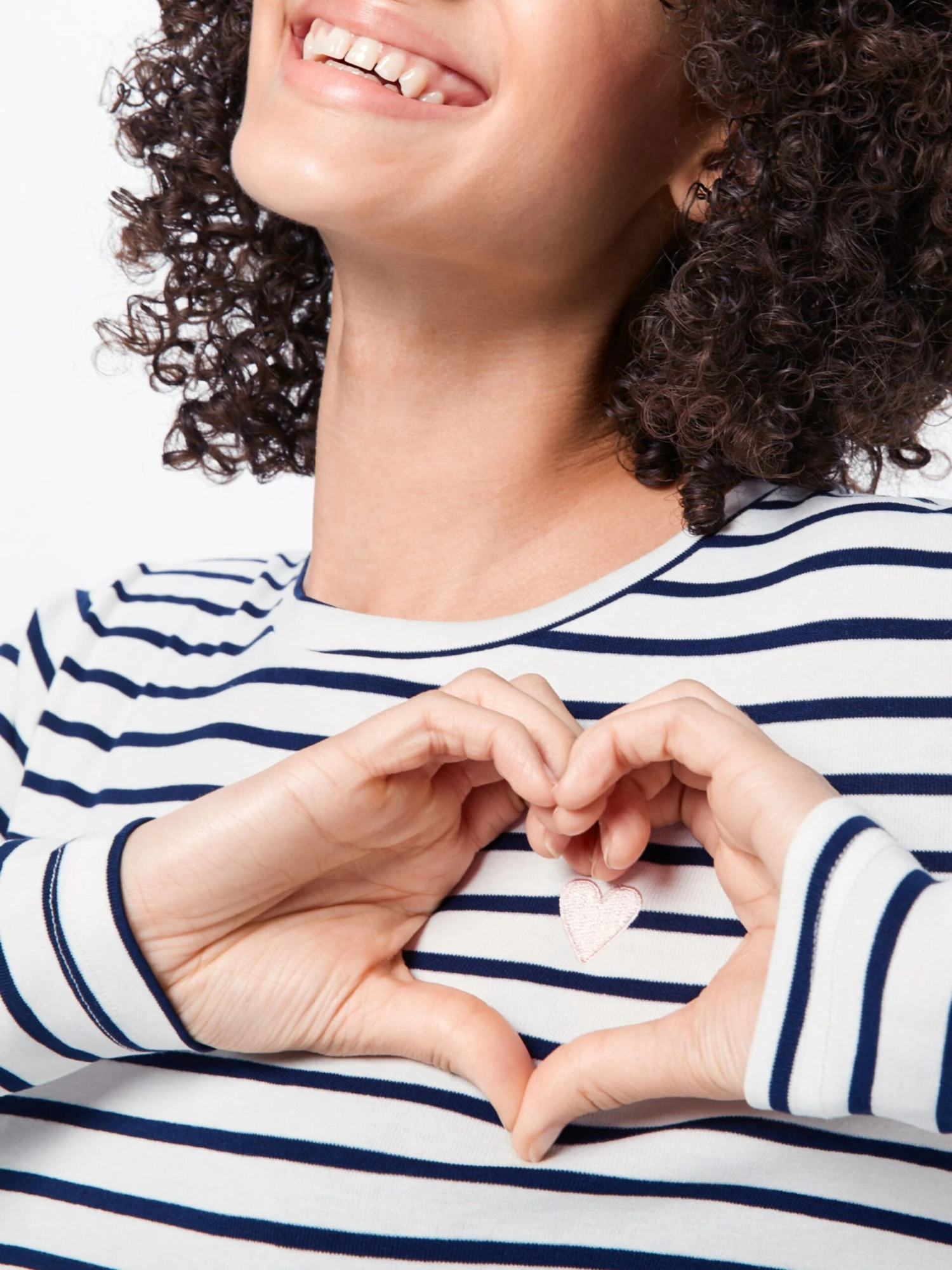 GestreeptJerseyRonde halsBorduurselsGevoerde zoom/randRecht modelAll-over patroonLabel borduurwerk