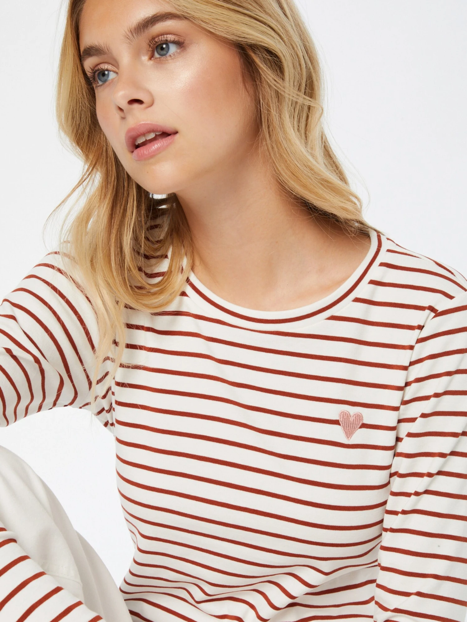 GestreeptJerseyRonde halsBorduurselsGevoerde zoom/randRechte zoomAll-over patroonVoelt zacht aan