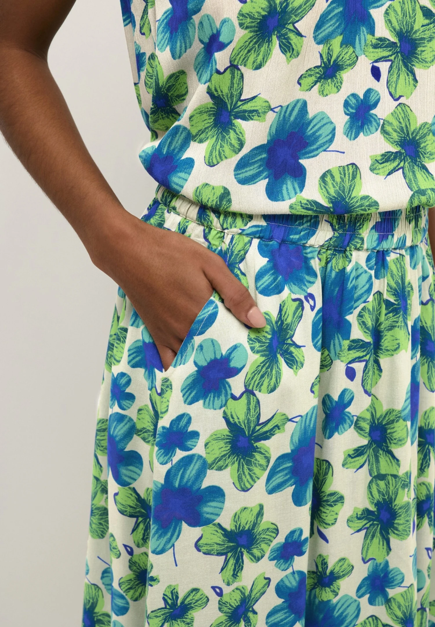 Kaffe Melina – A-Lijn Rok – Green And Blue Digital Flower