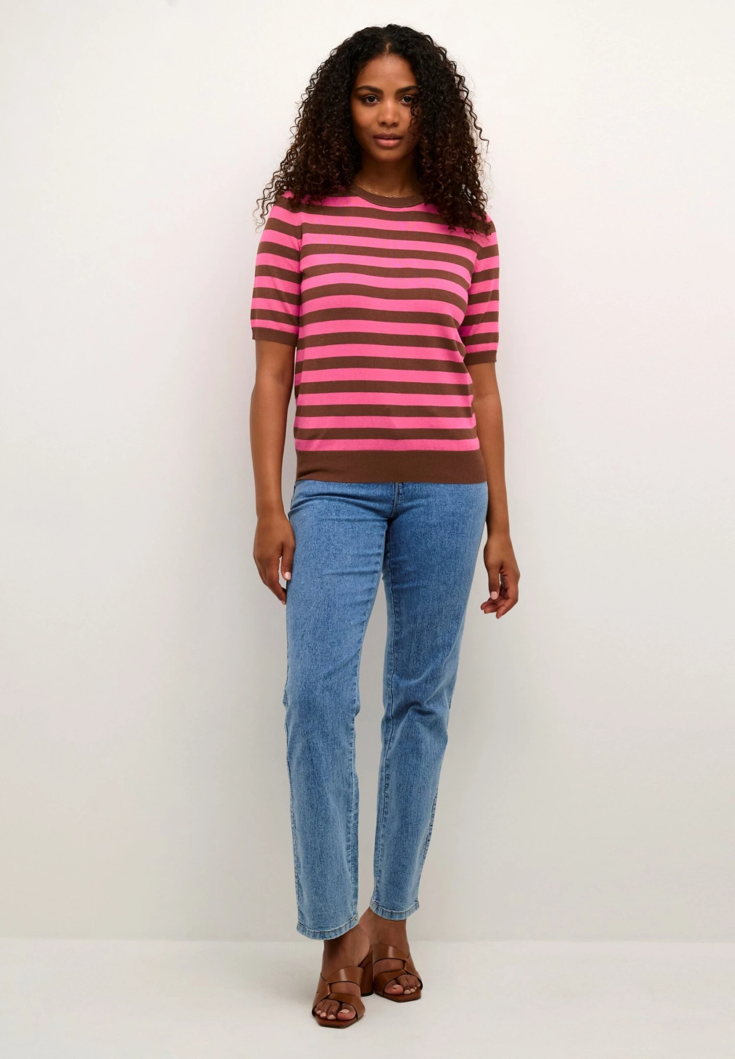 Kaffe Milo Short Sleeve- T-Shirt Print – Soft Silt Shoking Pink Stripe