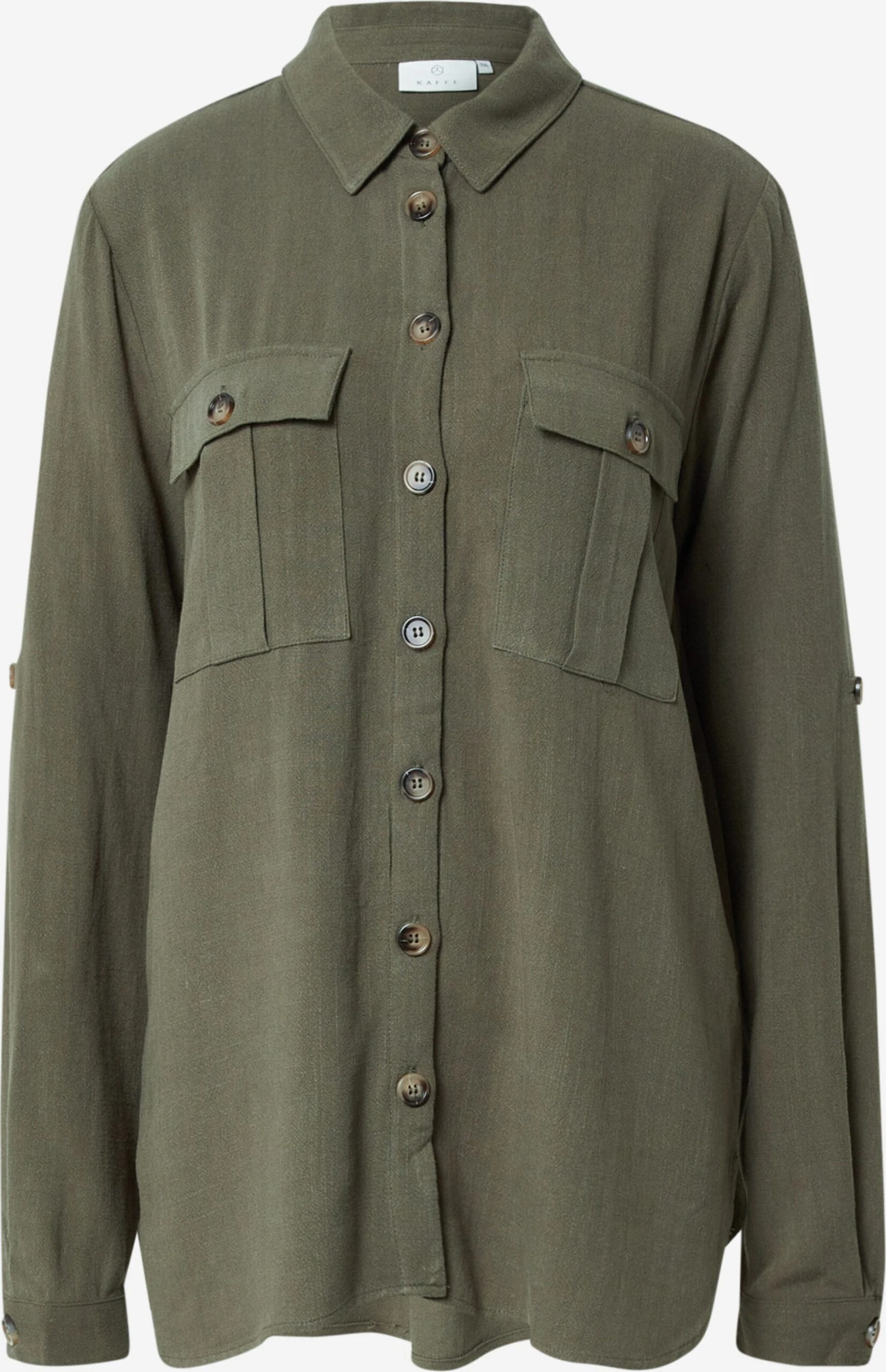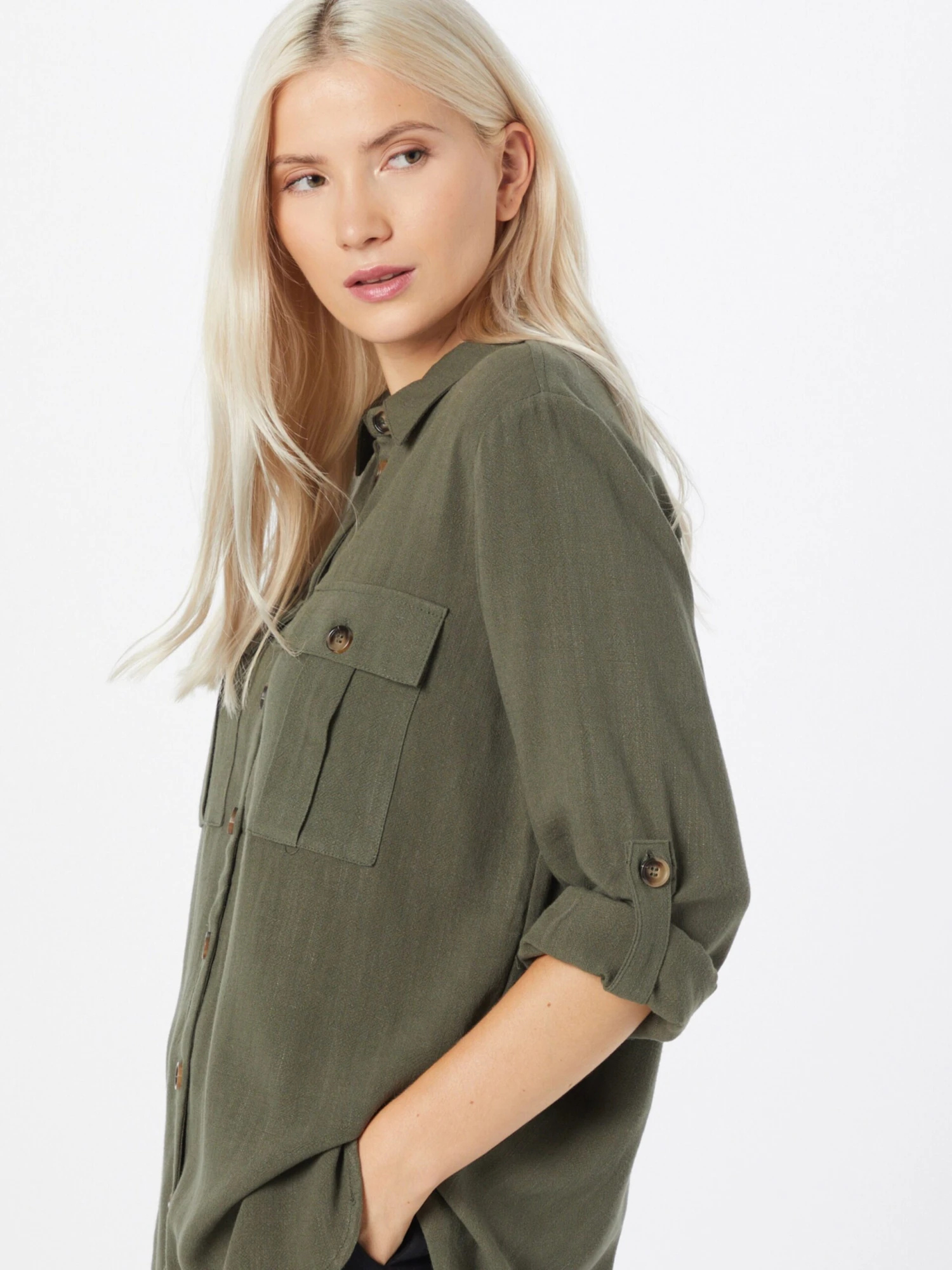 MélangeViscoseKentkraagPlooienGedrapeerd1-knoops manchettenGevoerde zoom/randPlacketRugplooiTurn-down kraagBorstzakOpzet-/flapzakRoll-up mouwenOp staal nadenGladde stofLichte stofKlassieke blouse