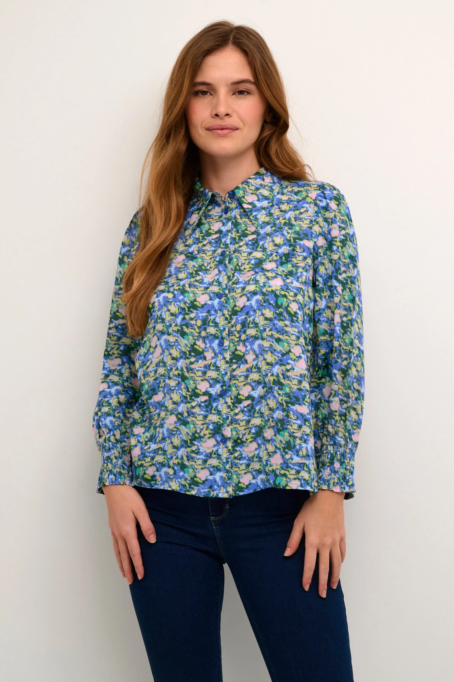ViscoseKentkraagGedrapeerdKlassieke blouseKnoopsluitingLENZING™ ECOVERO™ Viscose*