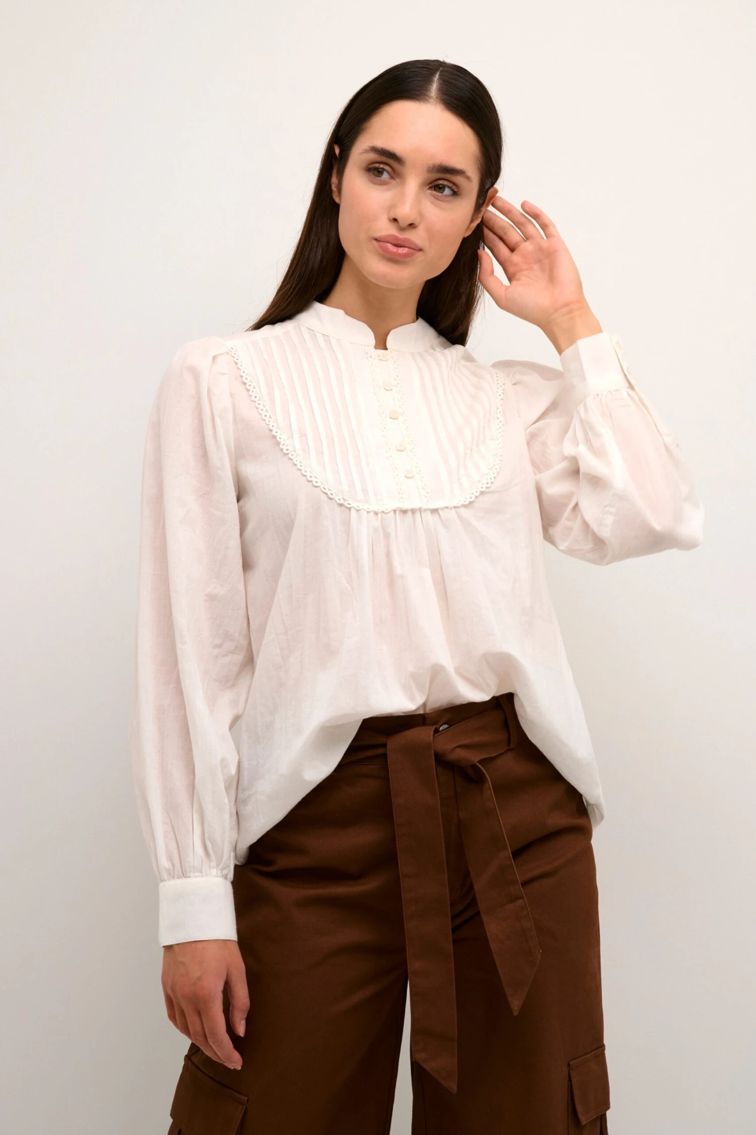 EffenKatoenOpstaande kraagGedrapeerdKlassieke blouse