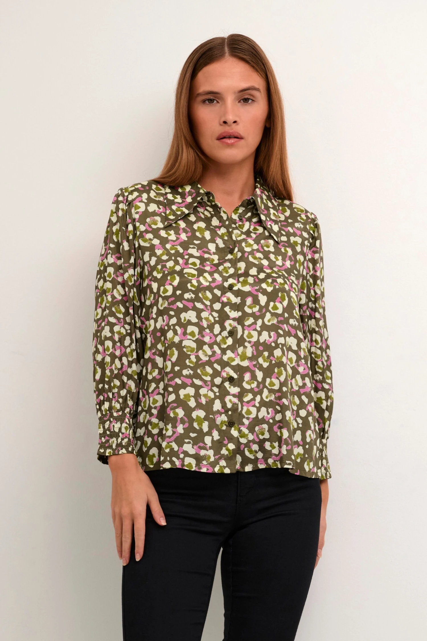 DierenprintViscoseKentkraagGedrapeerdKlassieke blouseKnoopsluitingLENZING™ ECOVERO™ Viscose*
