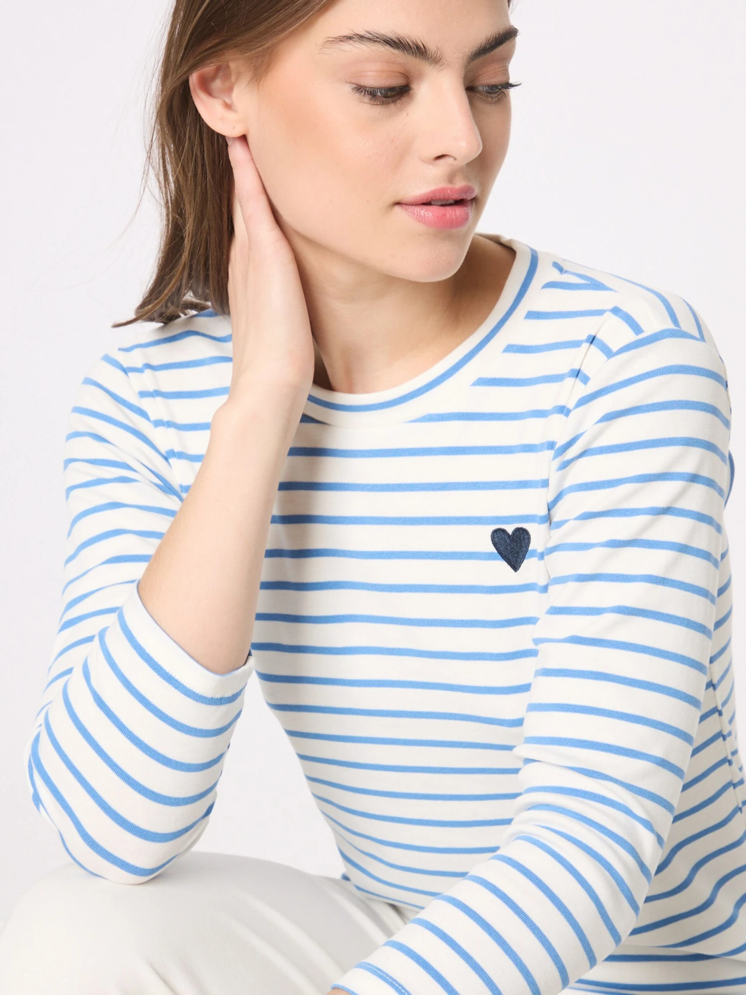 GestreeptJerseyRonde halsBorduurselsGevoerde zoom/randRechte zoomAll-over patroonBuigzame grip