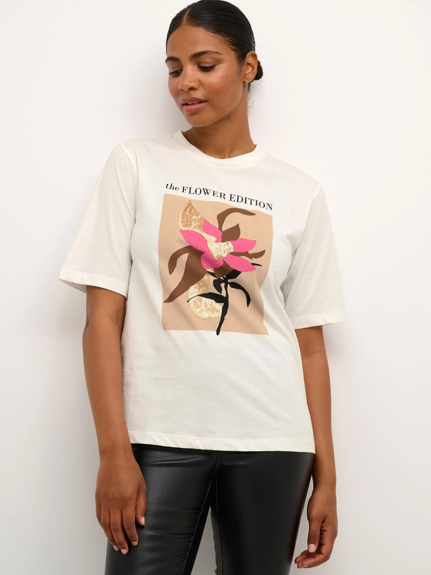 MotiefprintJerseyRonde halsPaillettenGevoerde zoom/randGeribbelde kraagRechte zoomOp staal nadenVoelt zacht aan