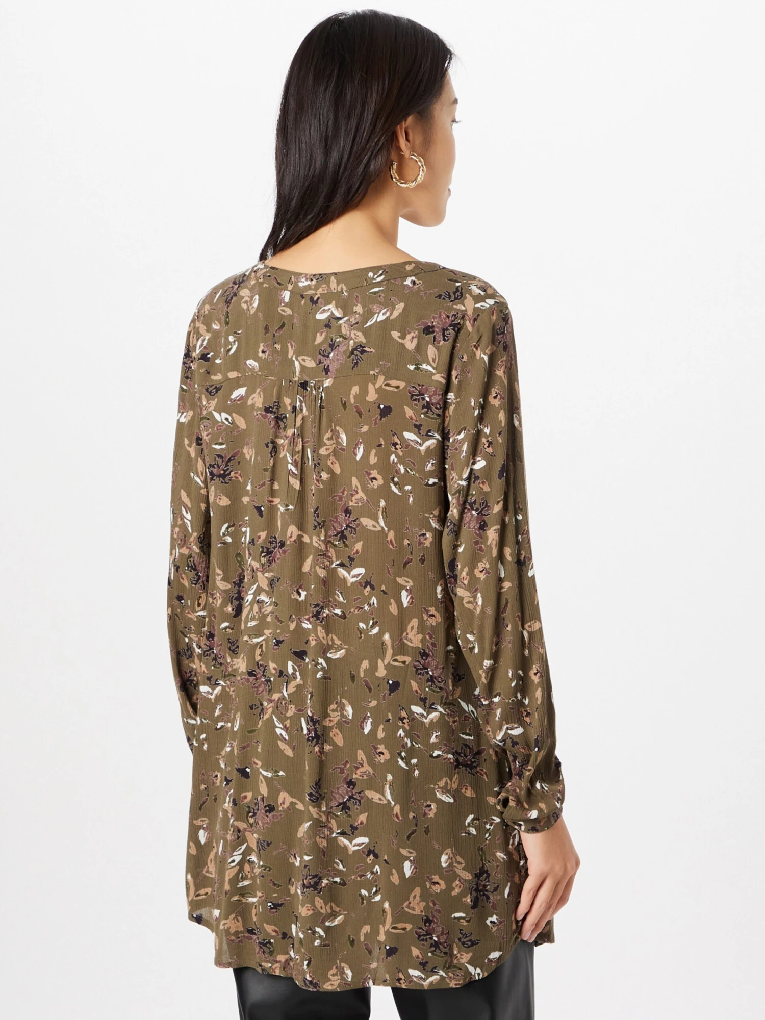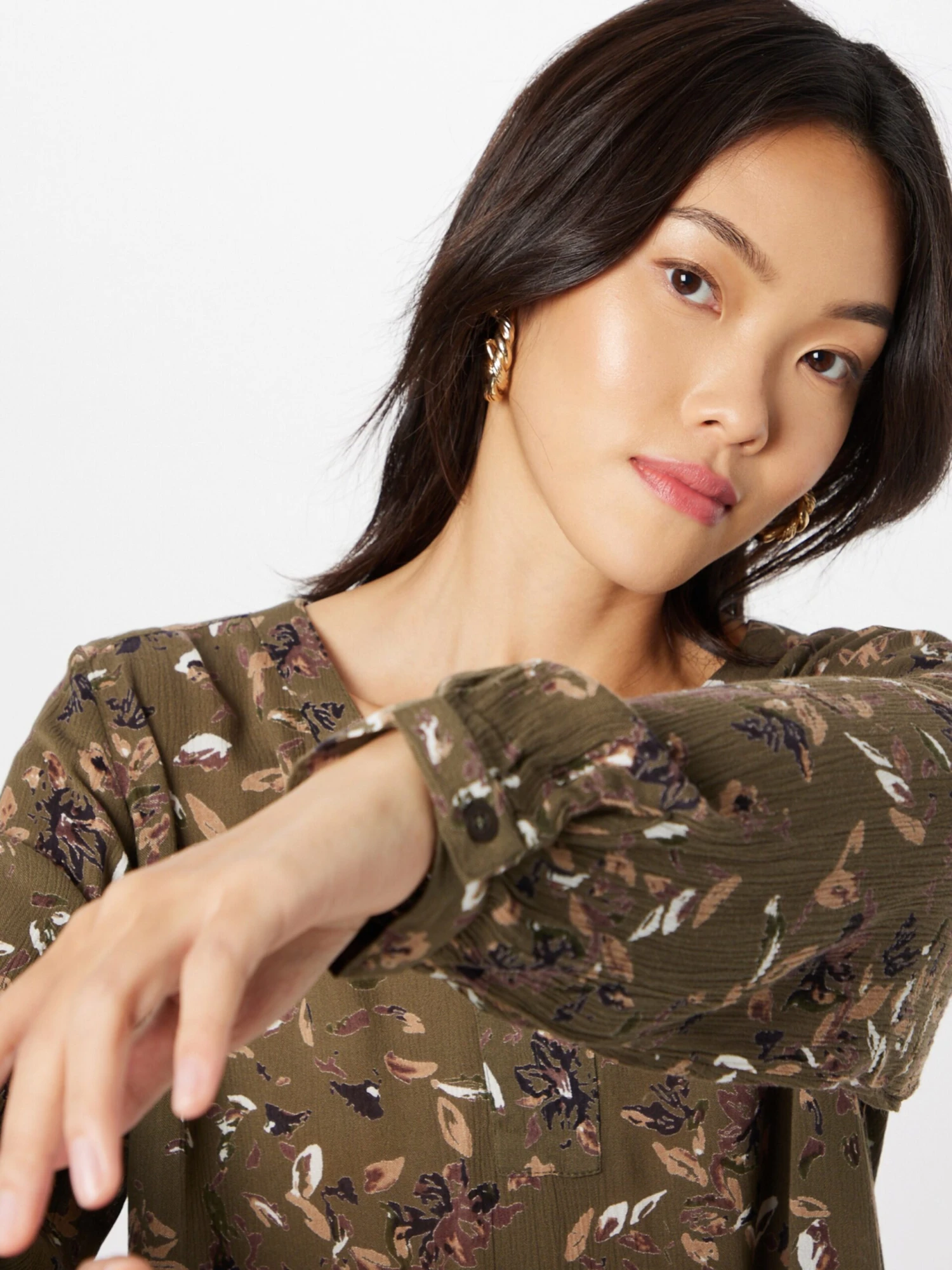 BloemenprintViscoseTuniek kraagPlooien1-knoops manchettenGevoerde zoom/randRugplooiOvercut schouderOverige kragenLosvallend modelAll-over patroonGladde stofKoele gripLichte stofLENZING™ ECOVERO™ Viscose*