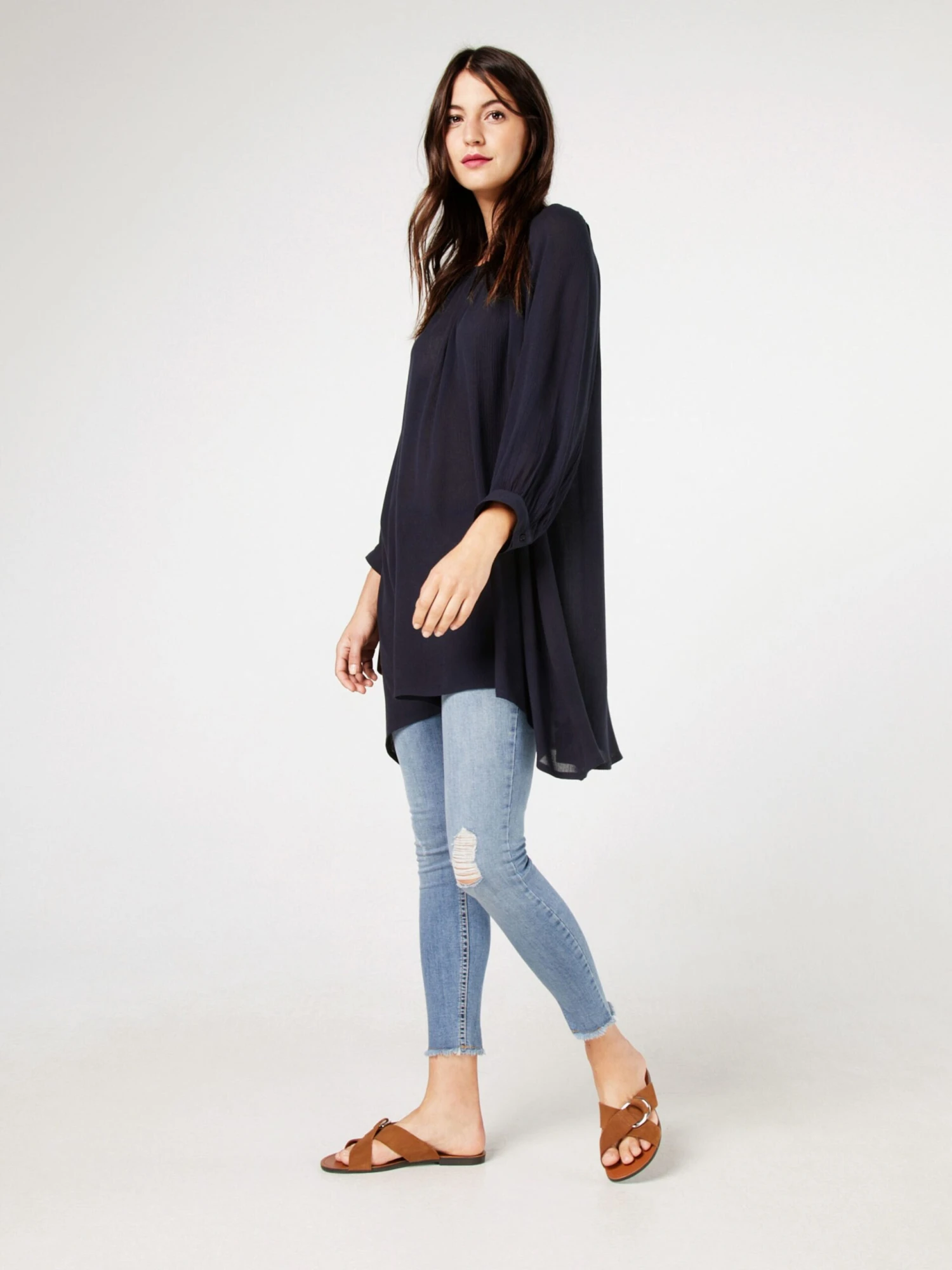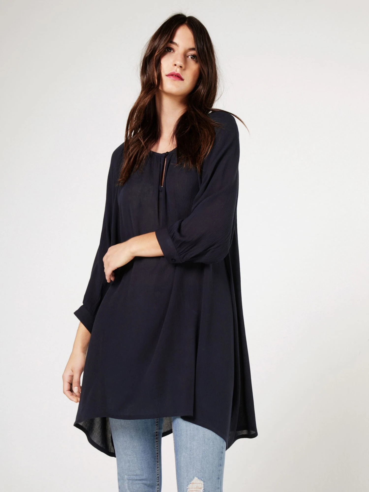 EffenViscoseZonder kraagGedrapeerdGevoerde zoom/randMouw reversRaglanmouwenKnop sluitingLicht transparantLichte stofWijde blouseKnoopsluitingLENZING™ ECOVERO™ Viscose*