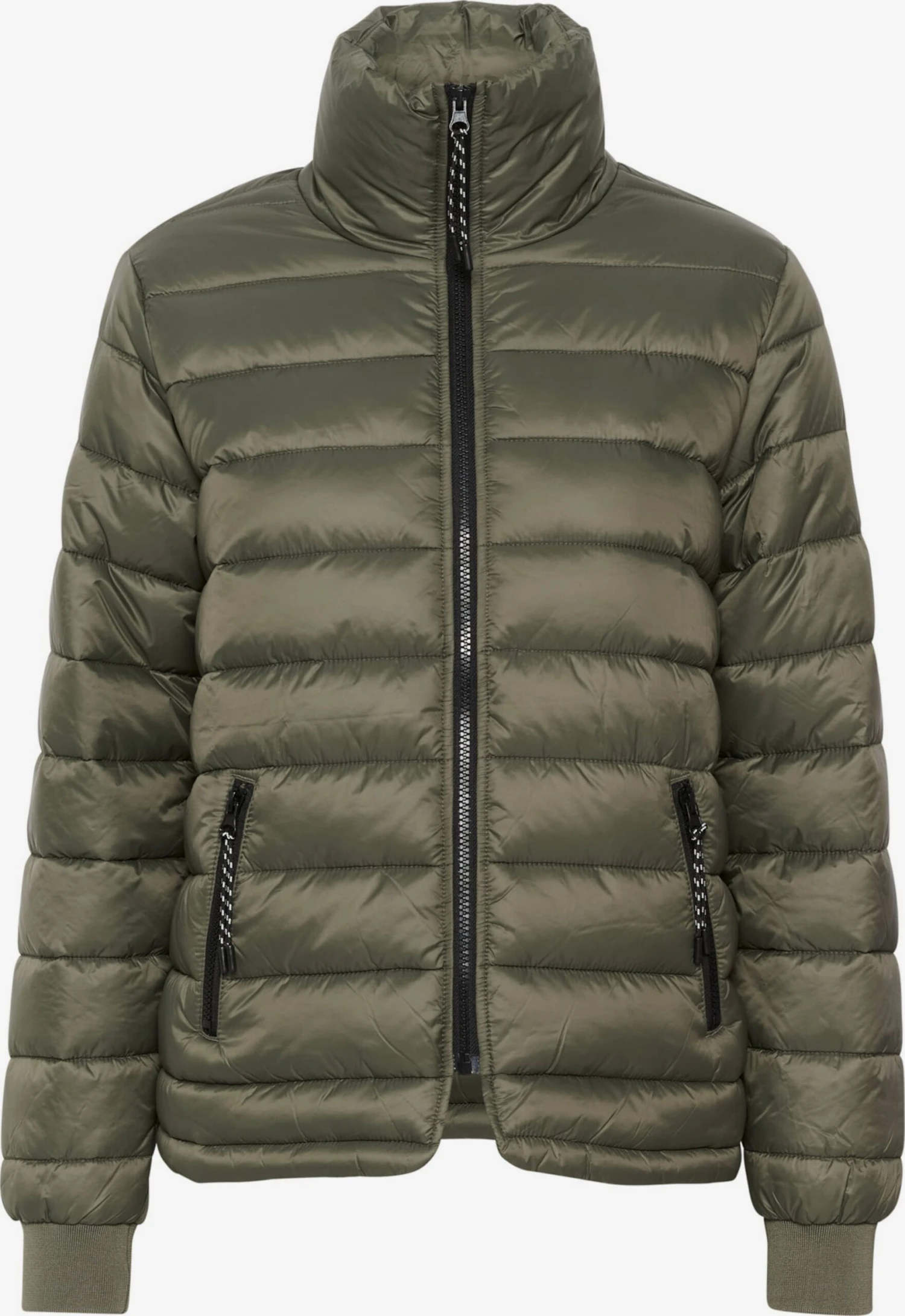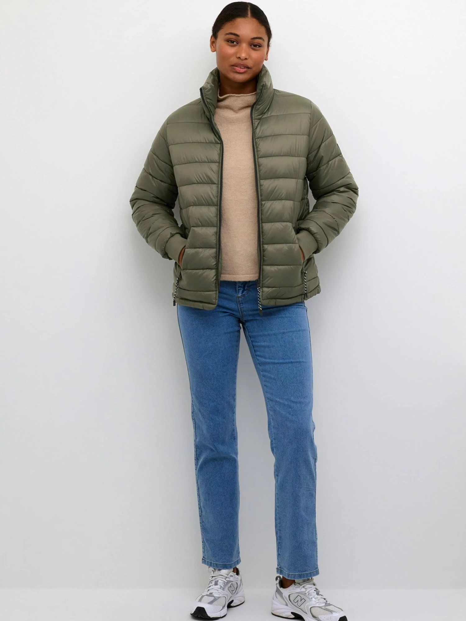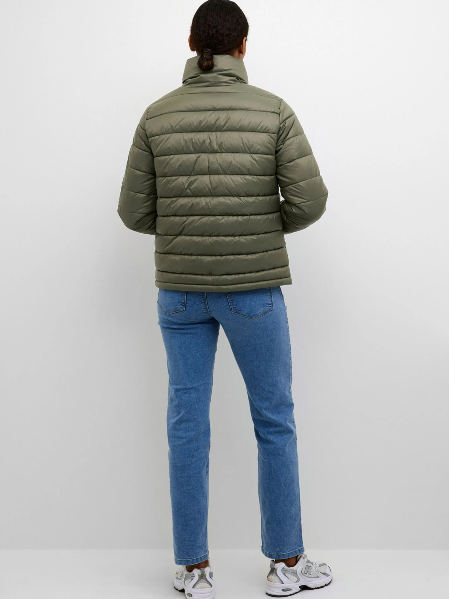 EffenGewatteerde jasStaande kraagRitszakken aan de zijkantOp staal nadenGladde stofLicht gevoerdRitssluiting