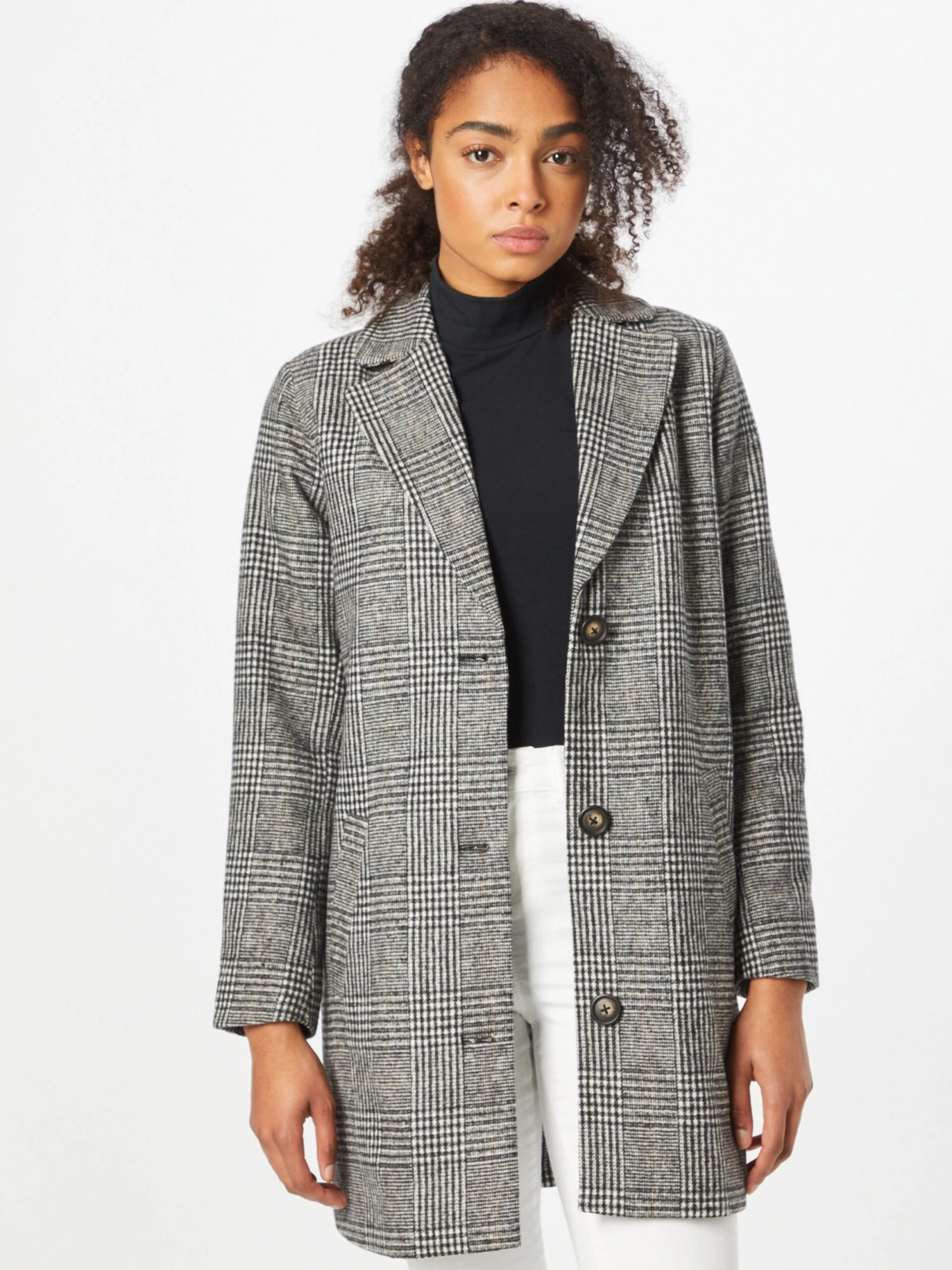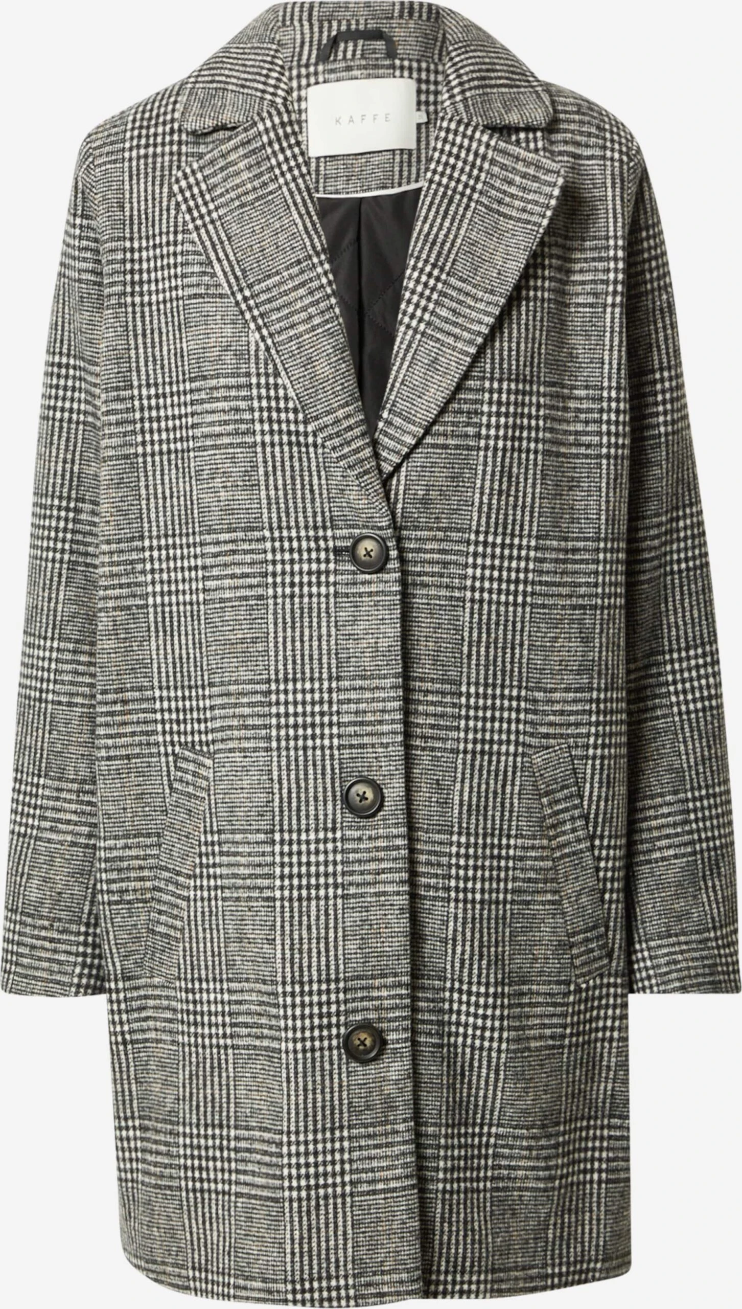 GeruitKlassieke mantelRechte zoomKnop placketRevers kraagZakken aan de zijkantAll-over patroonZware stofLicht gevoerdKnoopsluiting