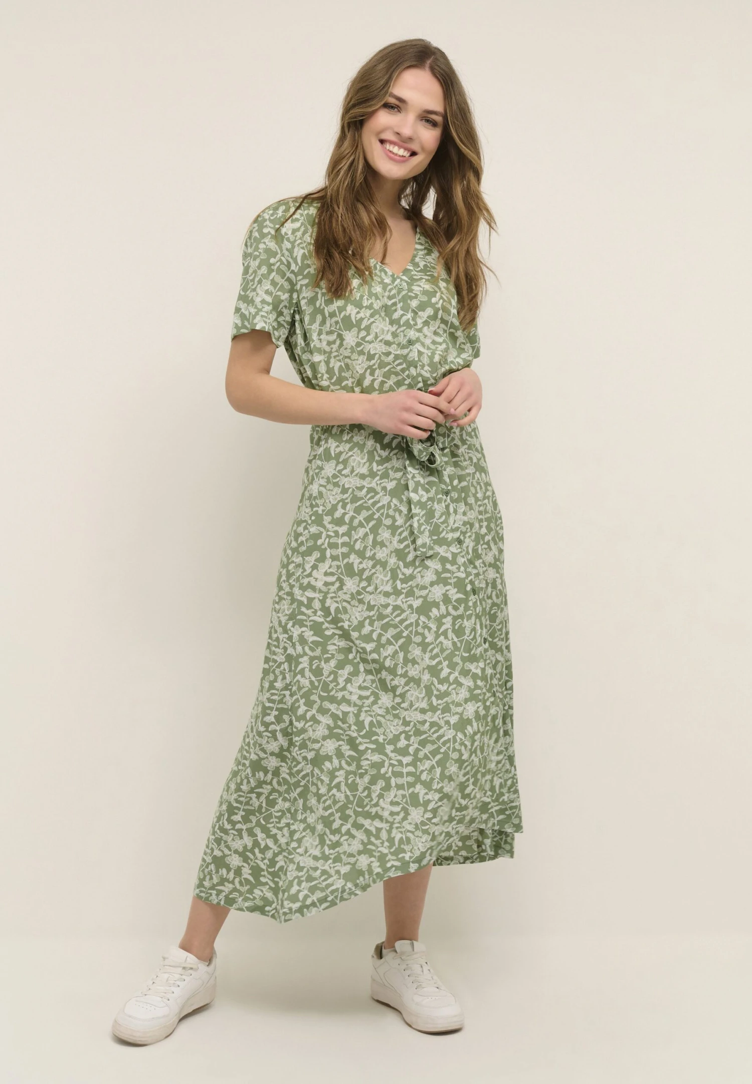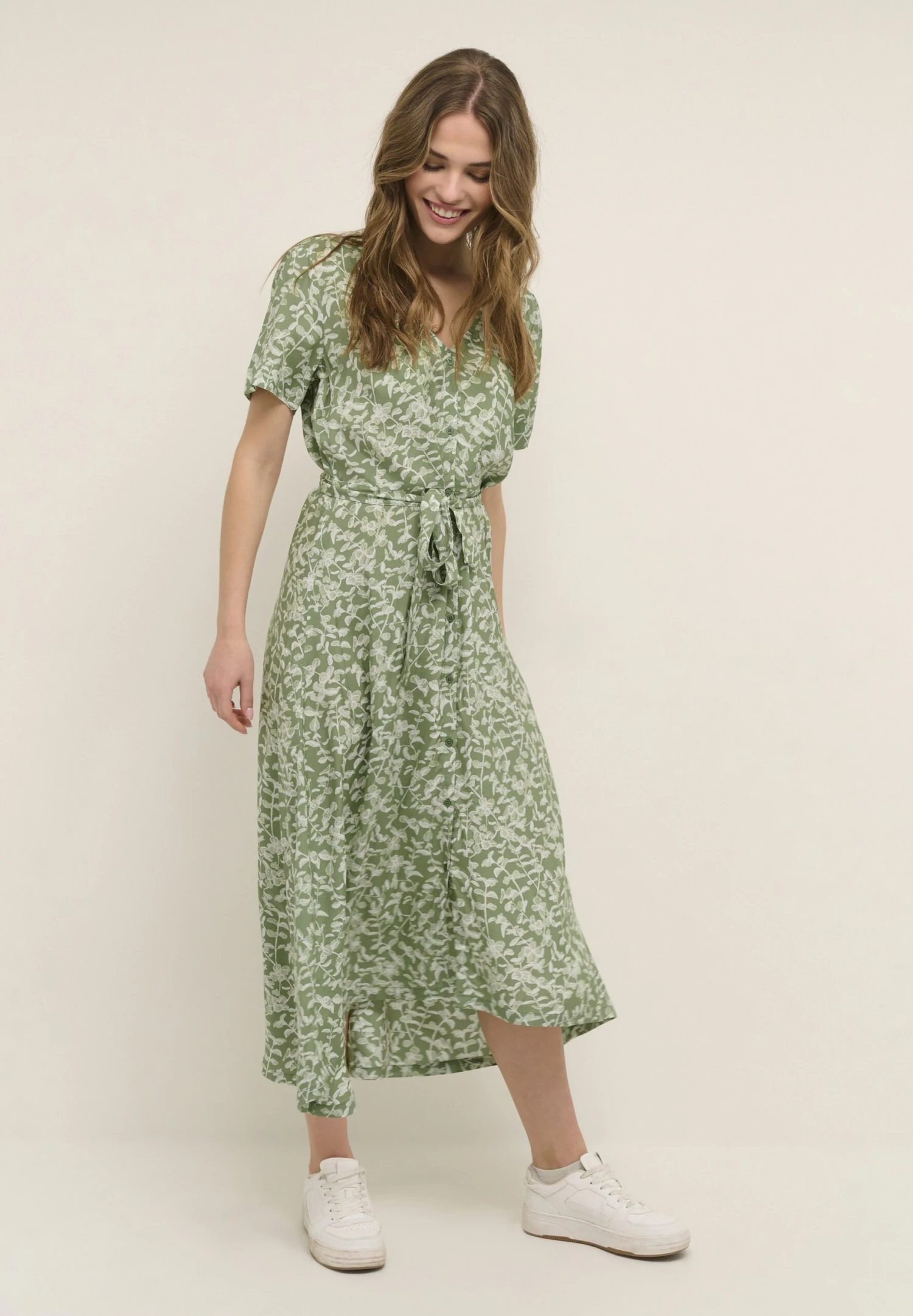 Kaffe Viola- Blousejurk – Green White Leaf Print
