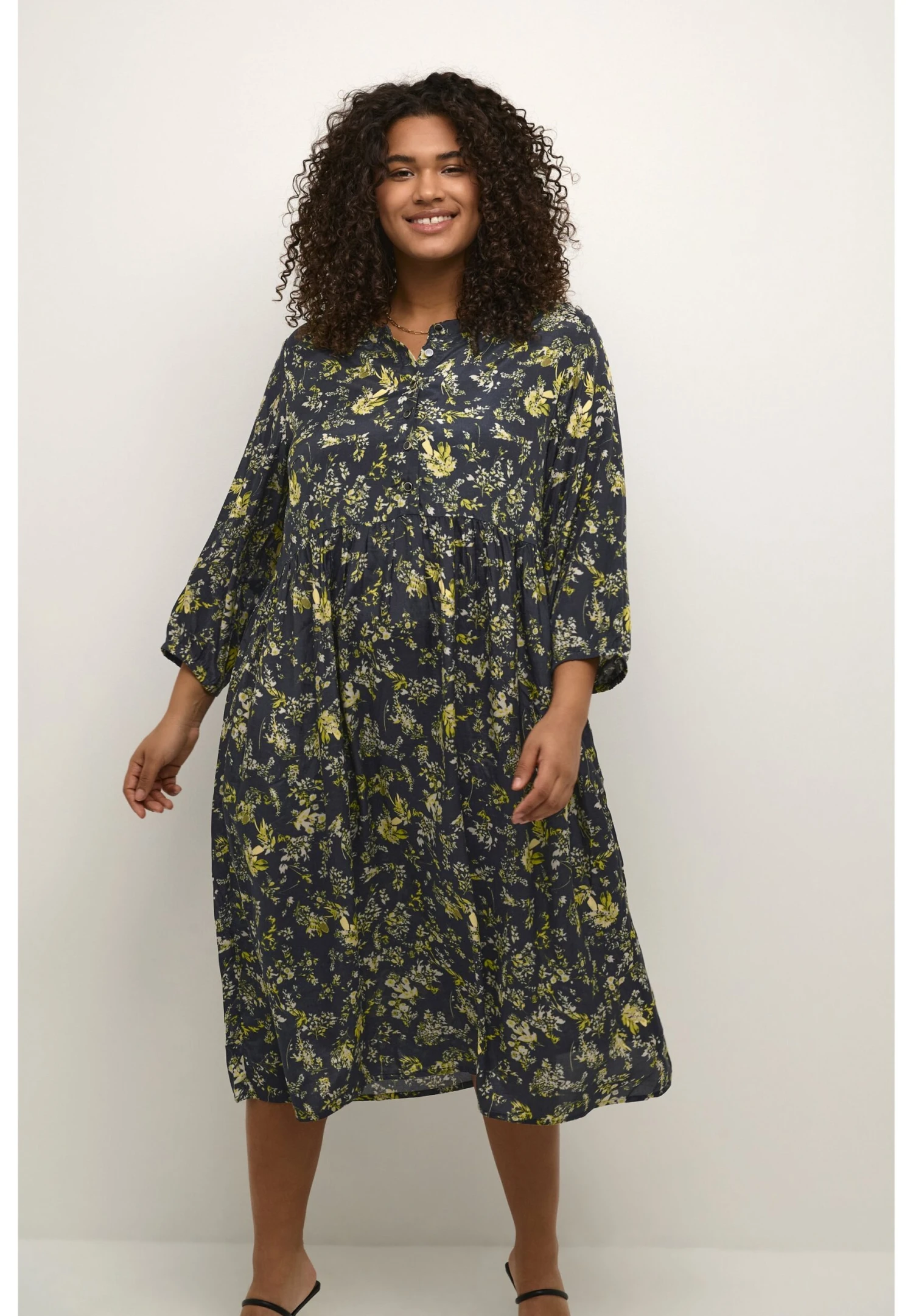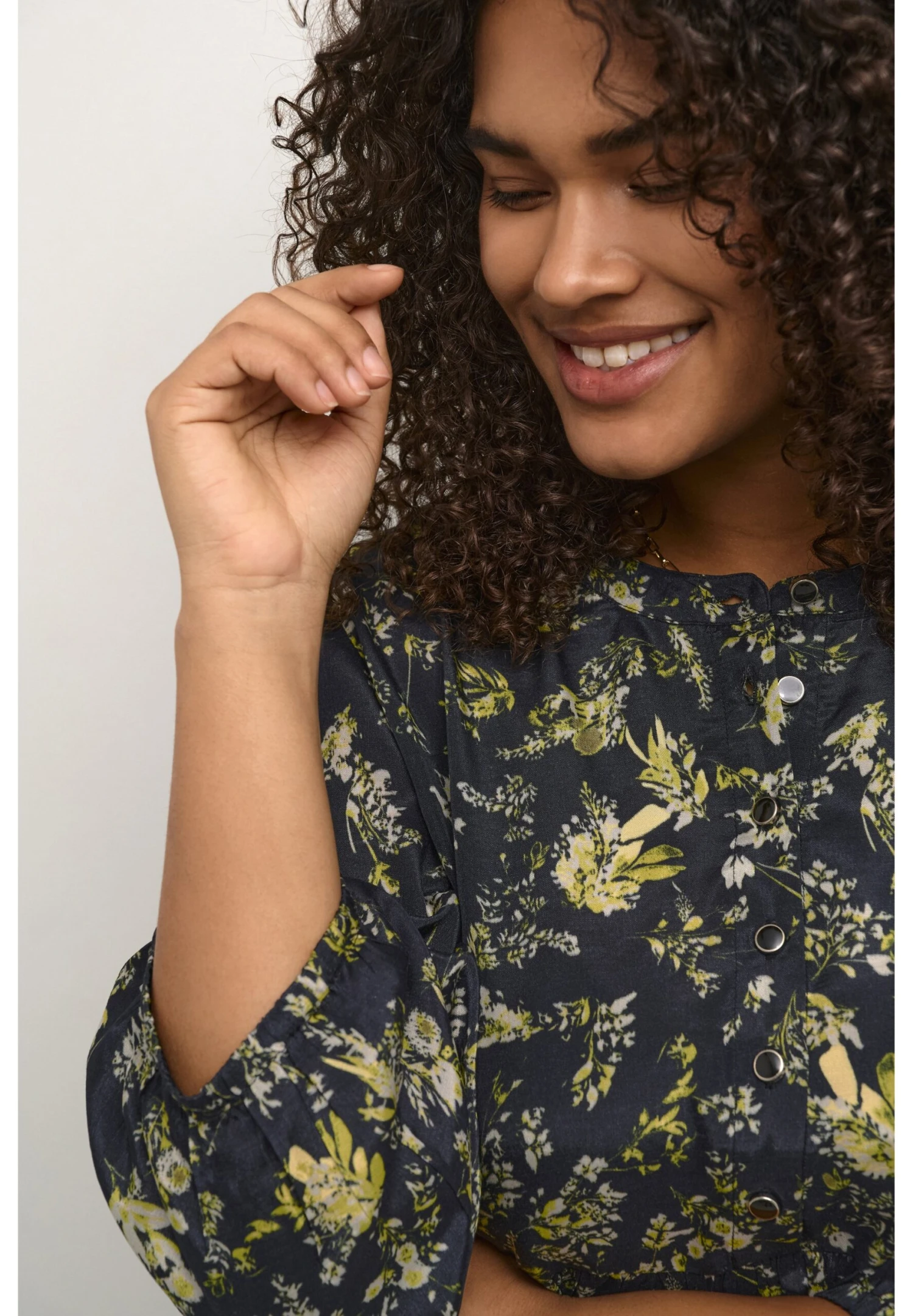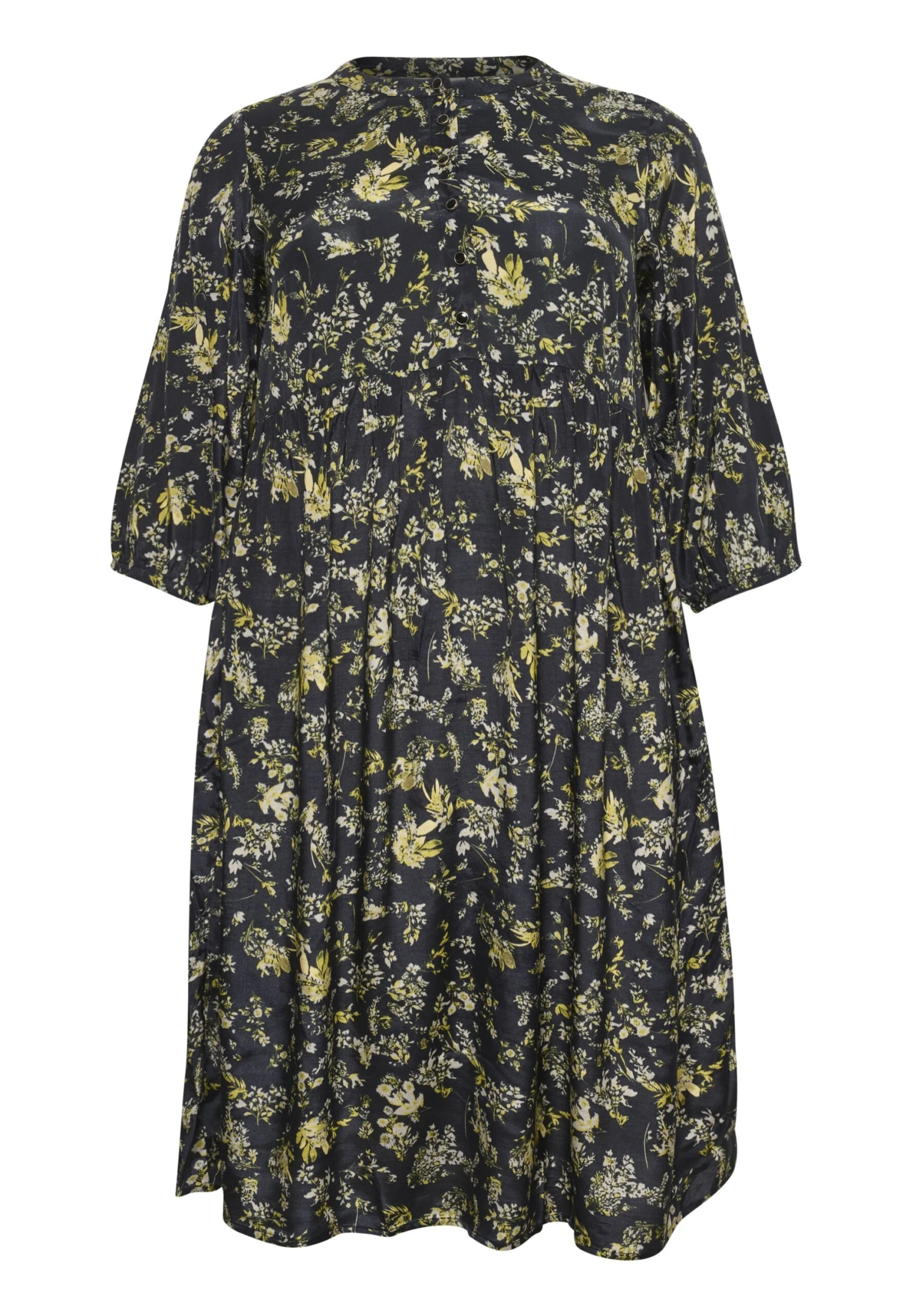 Kcevera- Blousejurk – Black Yellow Lime Flower Print
