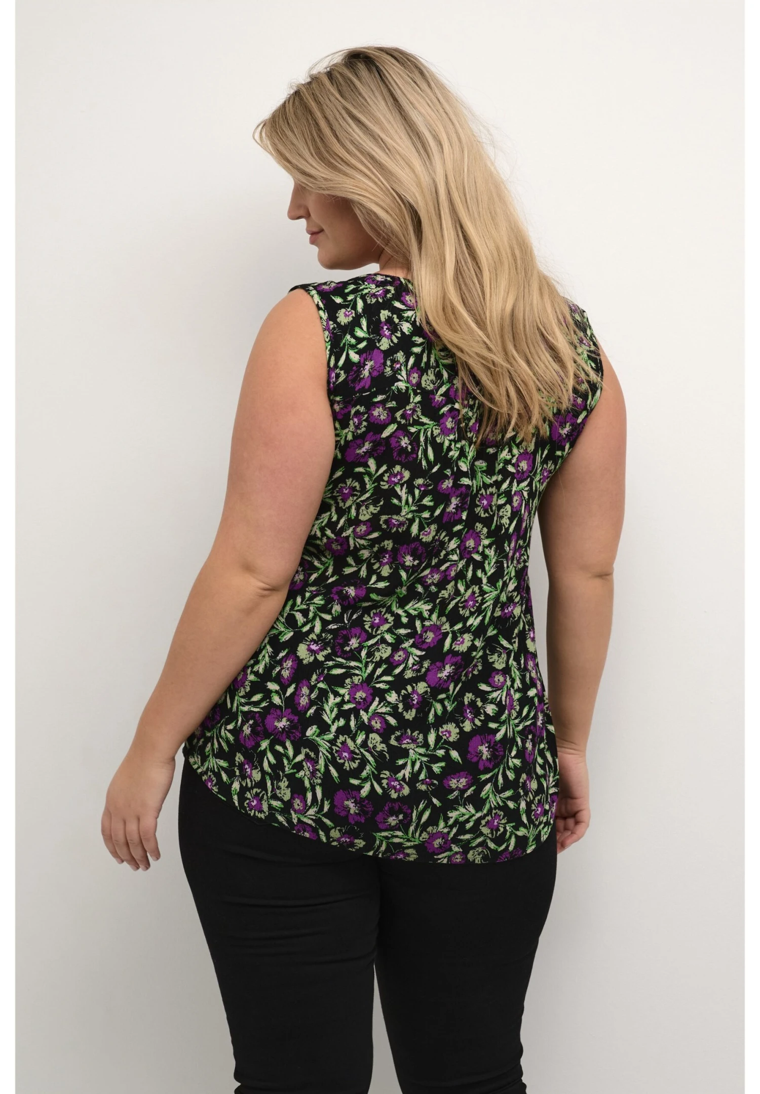 Kcisma Ami- Blouse – Black Green Purple Flower