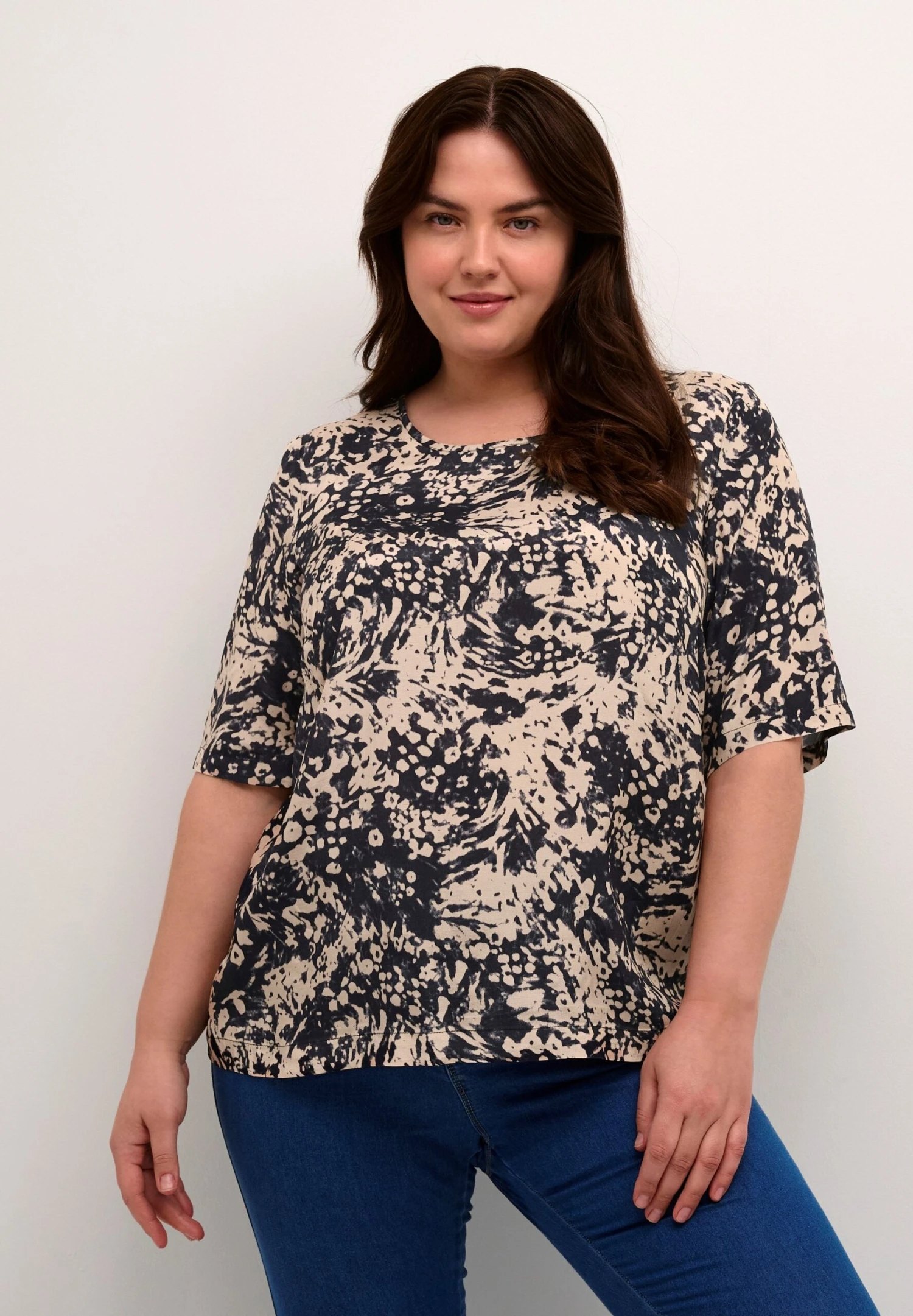 Kckamina ½ Sl – Blouse – Sand Black Abstract Print