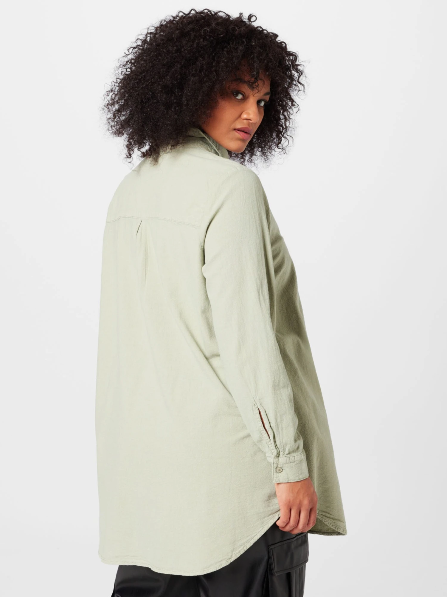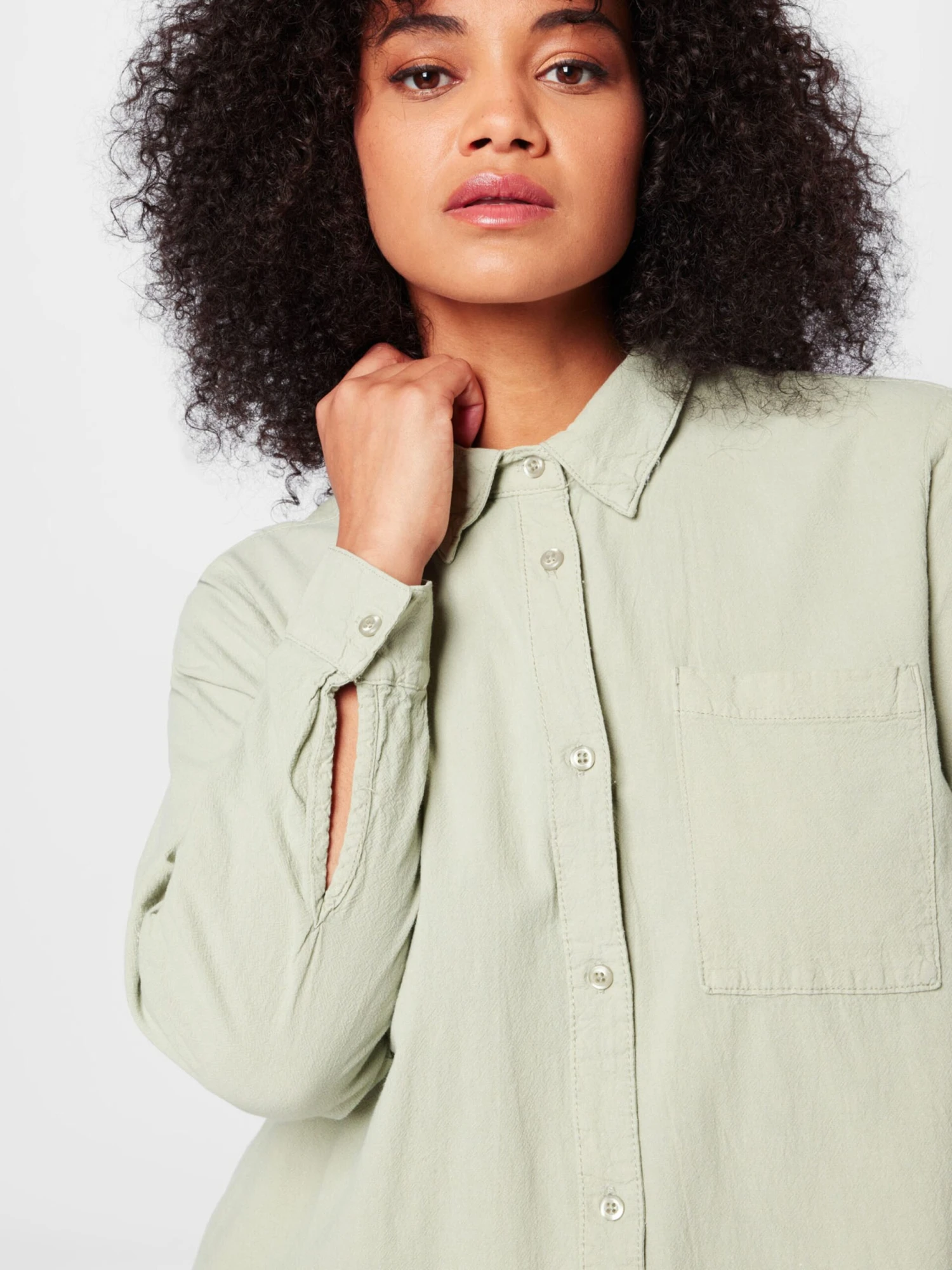 EffenKatoenKentkraag1-knoops manchettenGevoerde zoom/randKnop placketRugplooiRonde zoomTurn-down kraagBorstzakOp staal nadenVoelt zacht aanKlassieke blouseKnoopsluiting