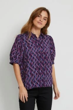 Kaffe Blouses Met Korte Mouw Blouse Lynn Dames Smoky Blue / Donkerblauw