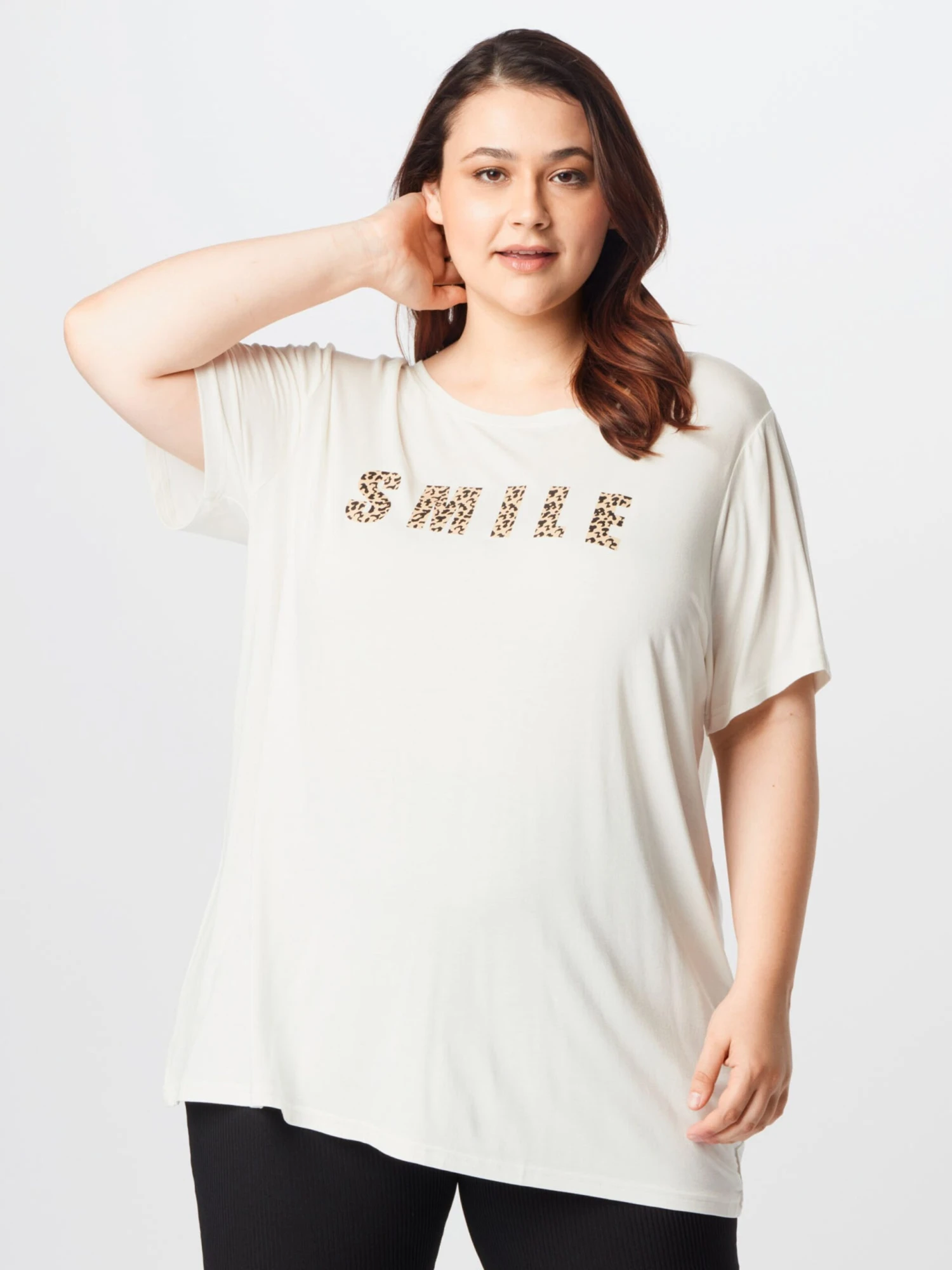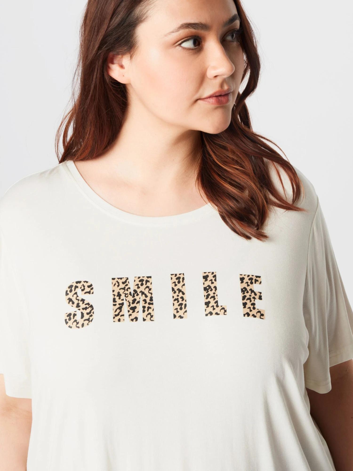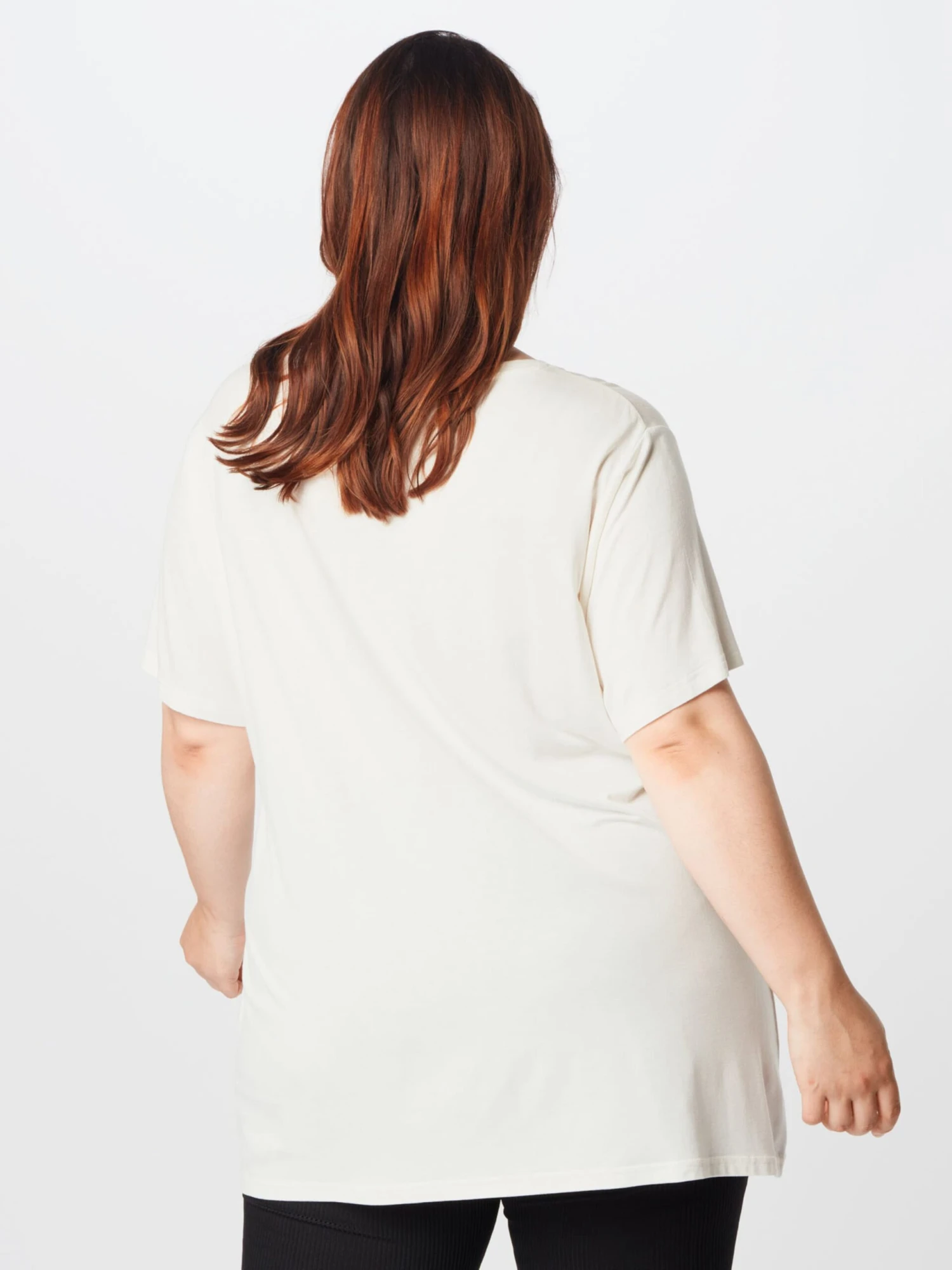 MottoprintJerseyRonde halsGevoerde zoom/randGeribbelde kraagRechte zoomNektapeOp staal nadenVoelt zacht aan