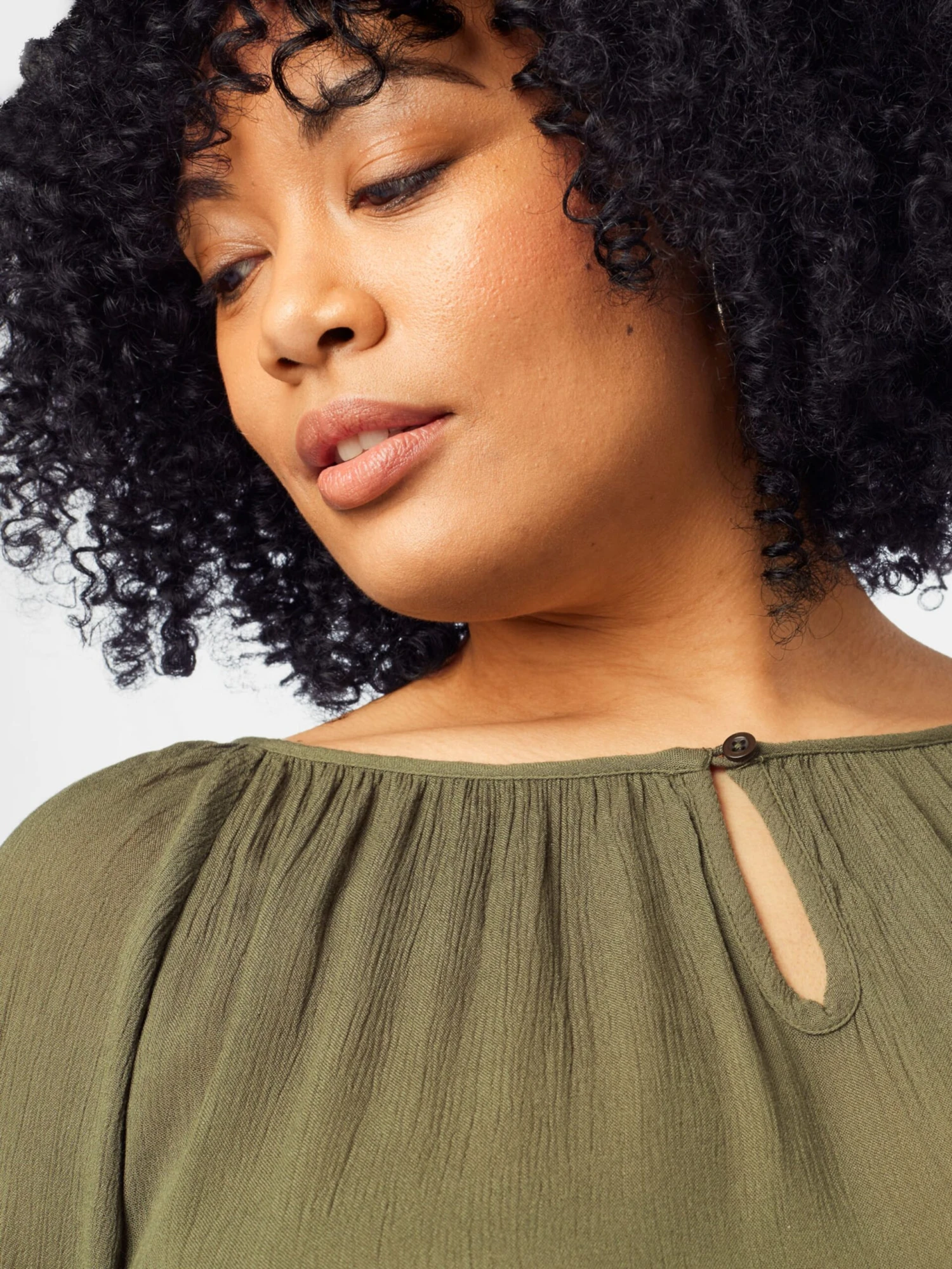 EffenViscoseZonder kraagCut-outsGedrapeerdGevoerde zoom/randKeyholesluitingPofmouwenOp staal nadenGladde stofKnoopsluitingLENZING™ ECOVERO™ Viscose*