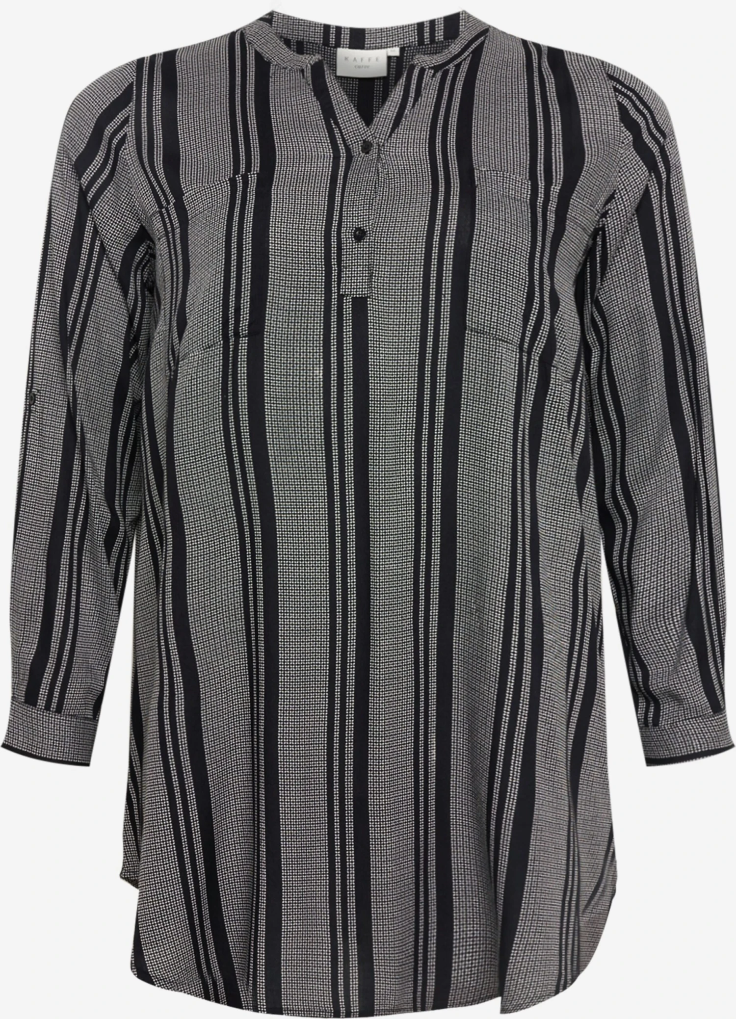 GestreeptViscoseTuniek kraagGedrapeerd1-knoops manchettenGevoerde zoom/randRonde zoomBorstzakAll-over patroonGladde stofKnoopsluitingLENZING™ ECOVERO™ Viscose*